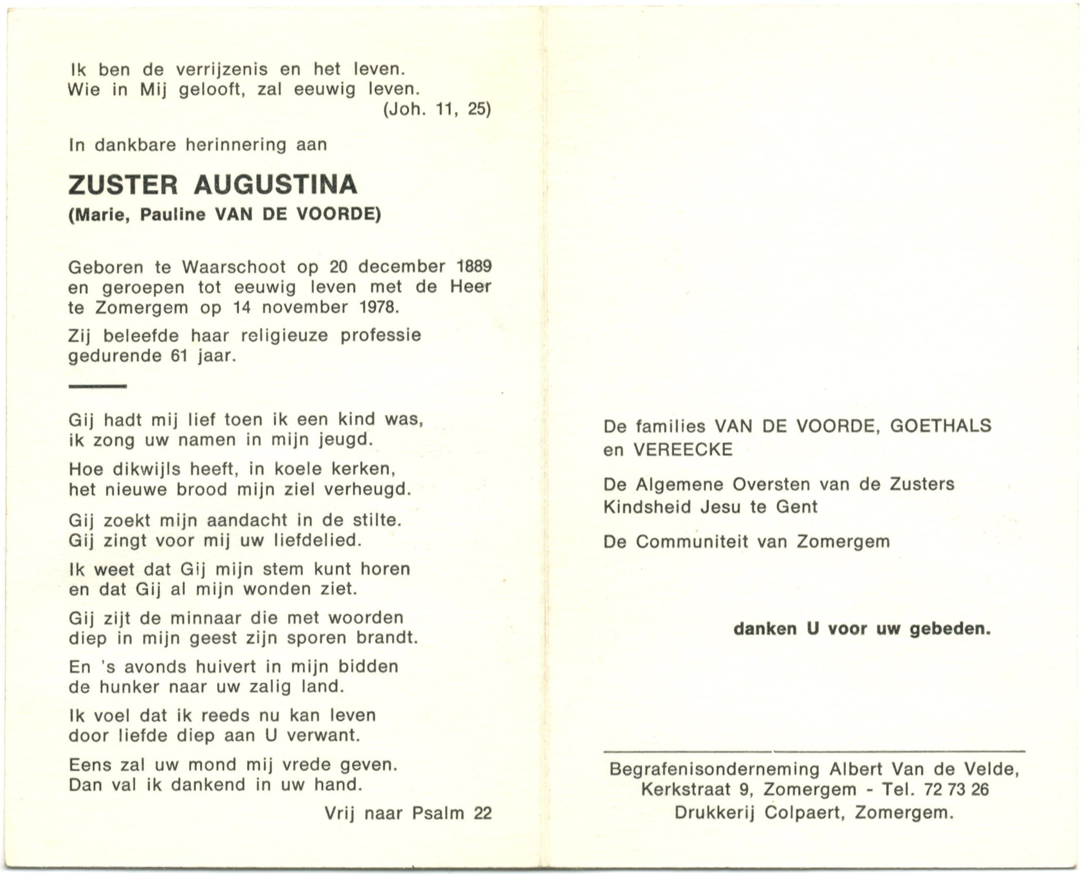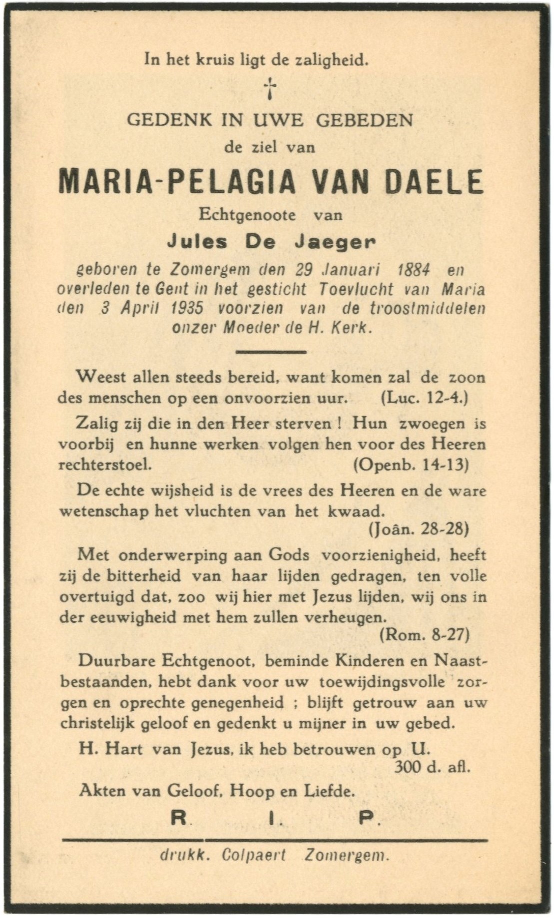 Van De Weghe, Maria (Zomergem 10/1/1885 - id 12/9/1962)