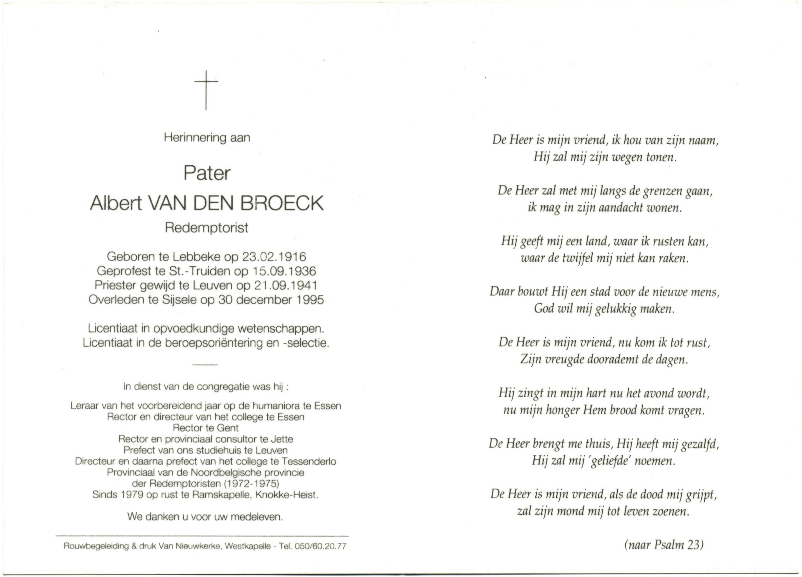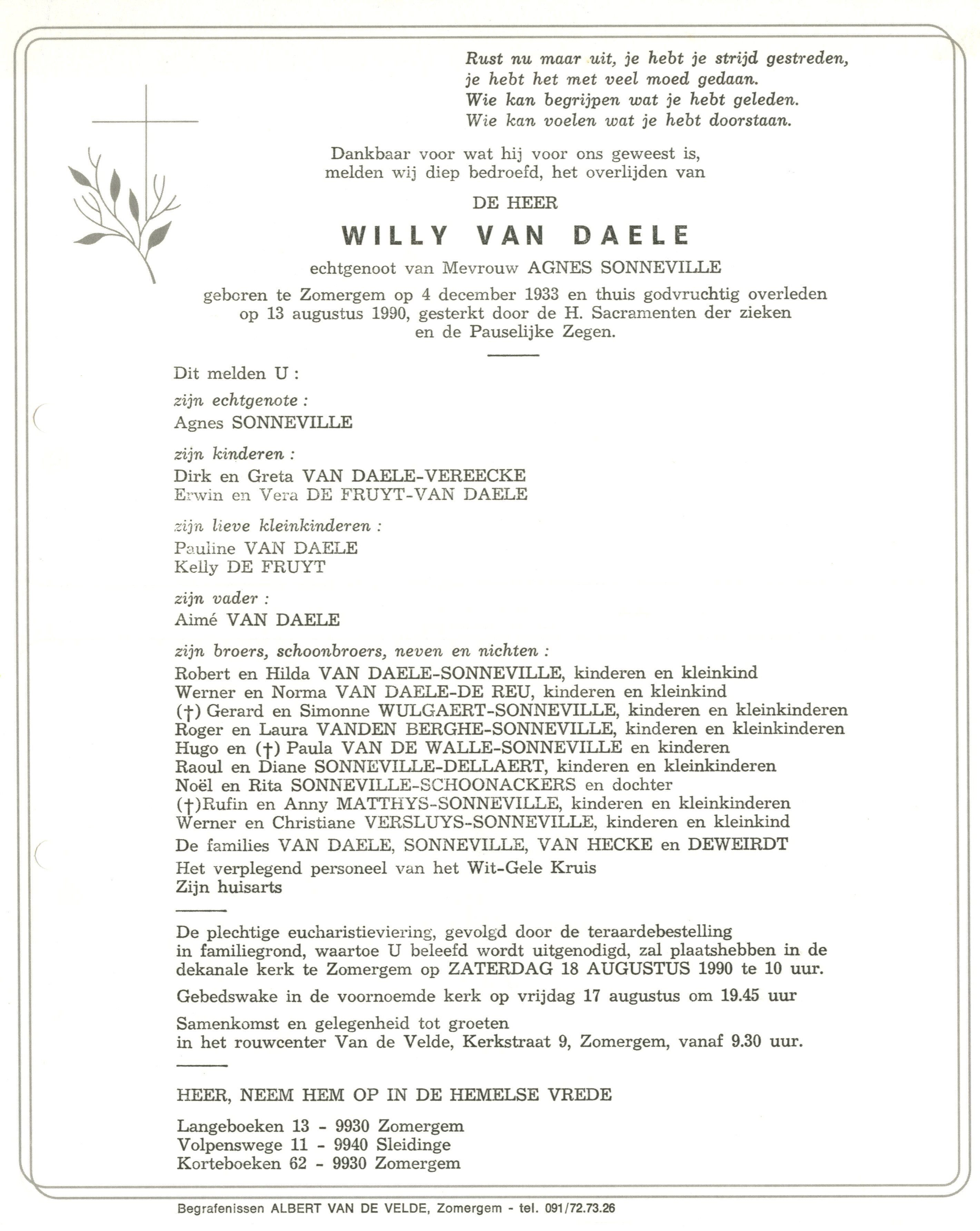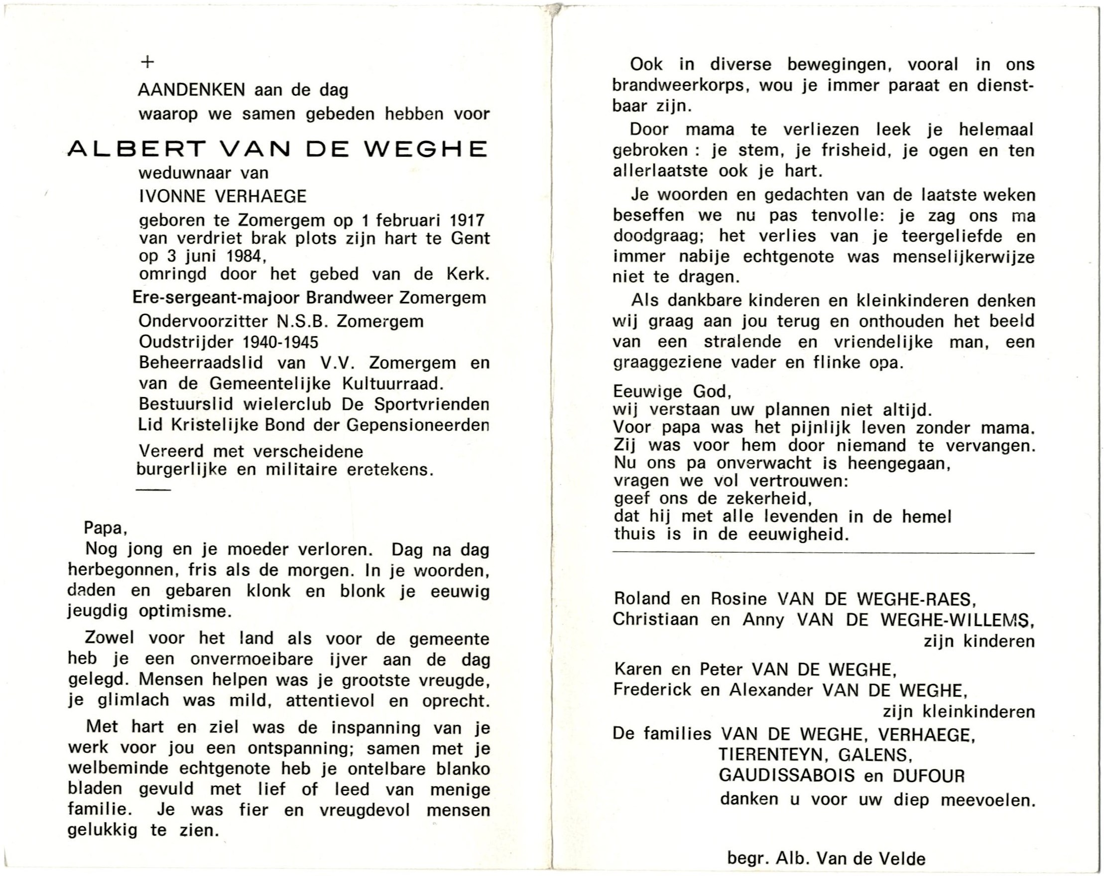 Van De Weghe, Armand (Zomergem 11/9/1915 - id 2/8/1999) w. Wille, Aimé