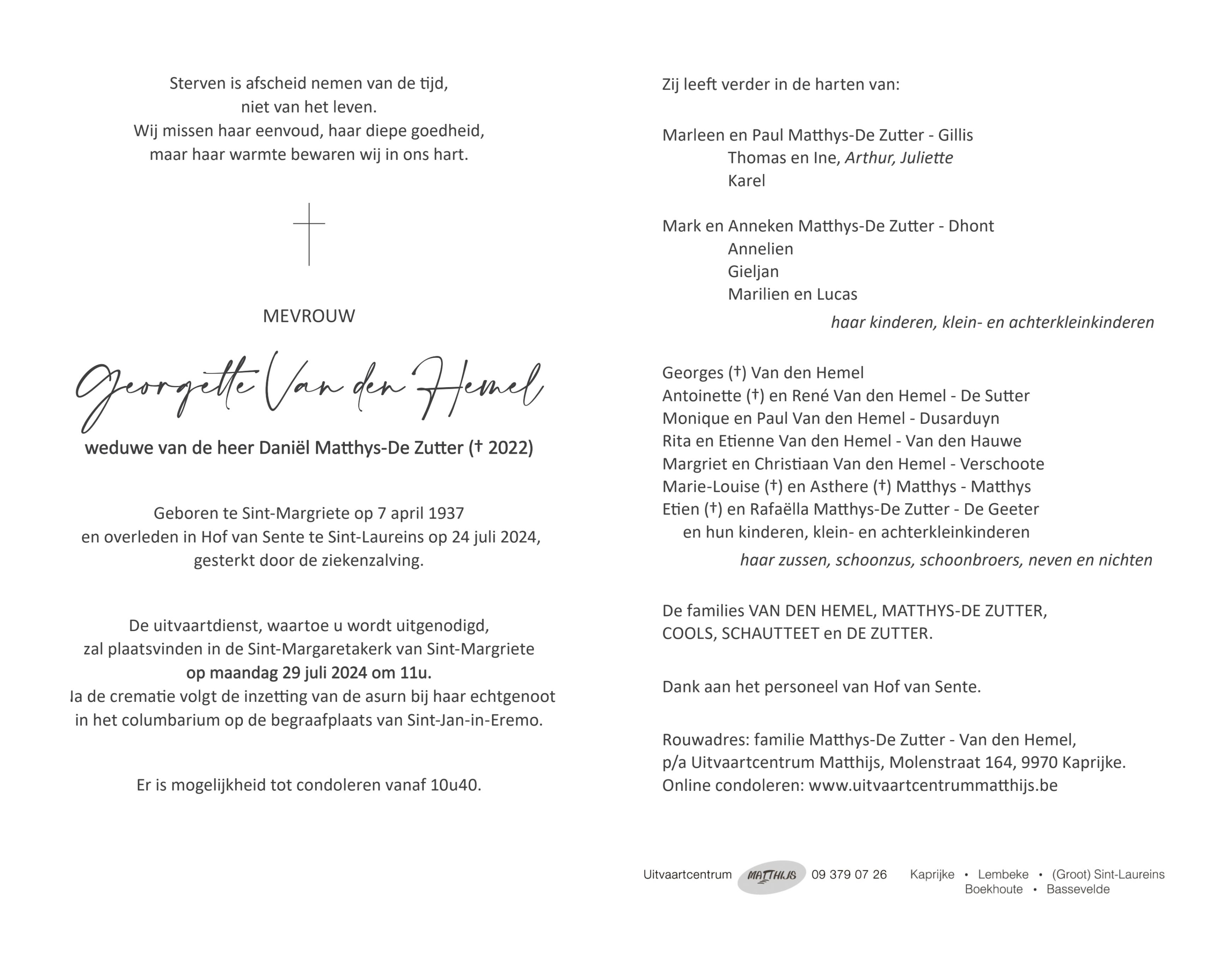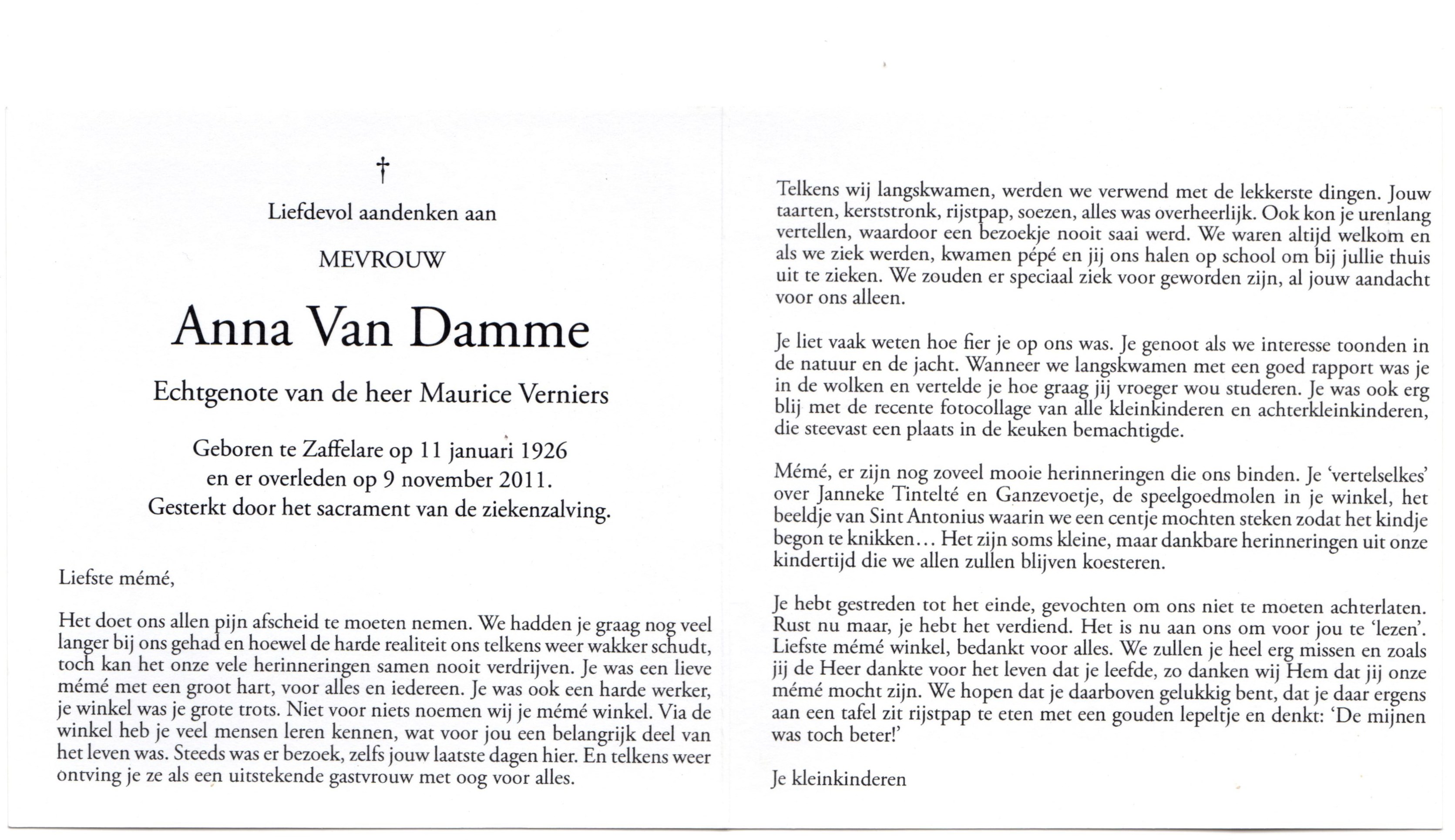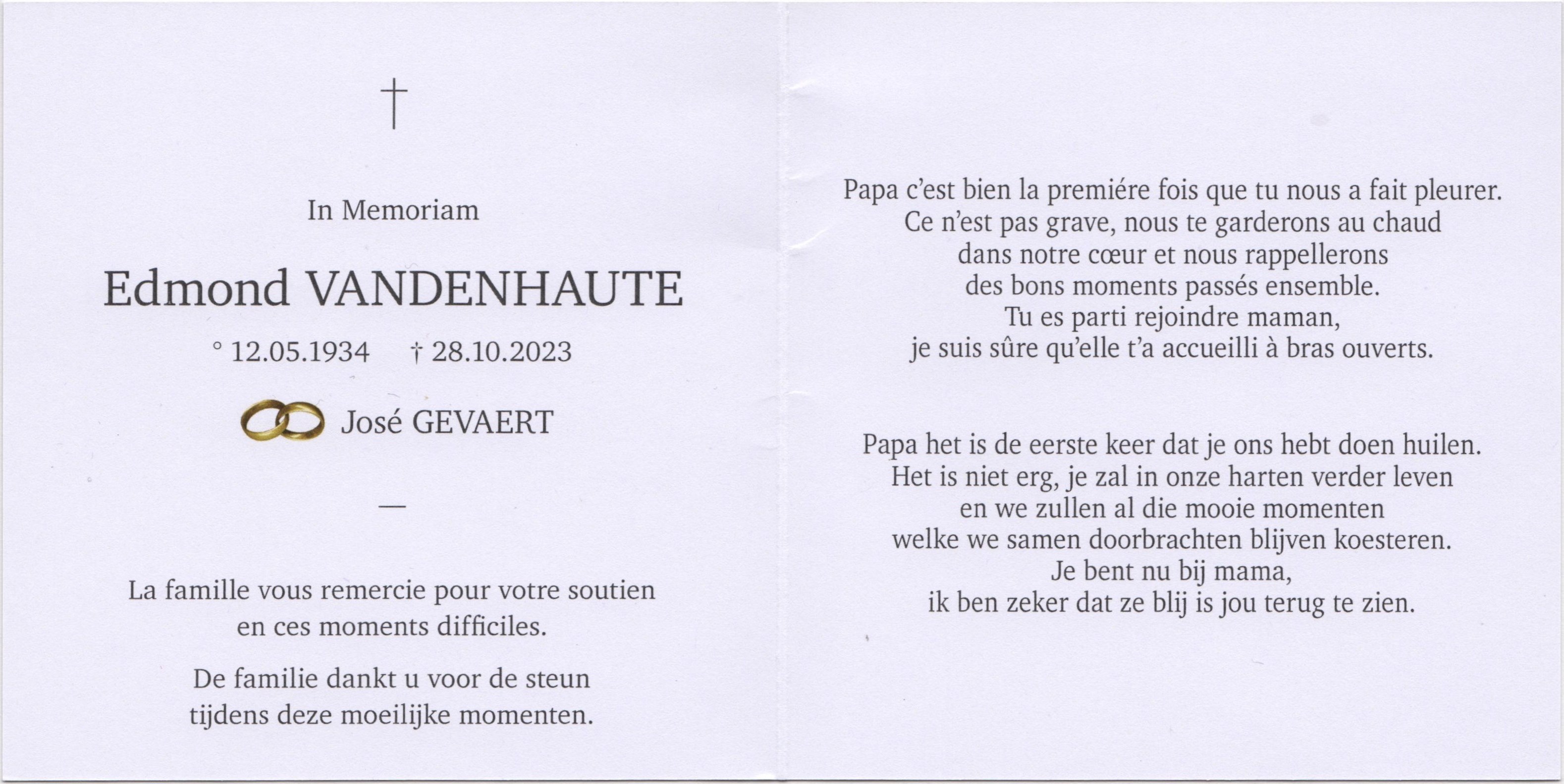 Vanassche, Annie (Passendale 19/3/1944 - Ursel 1/9/2024) e. Verstraete, Dierk