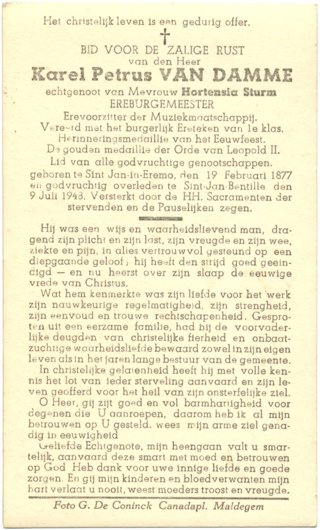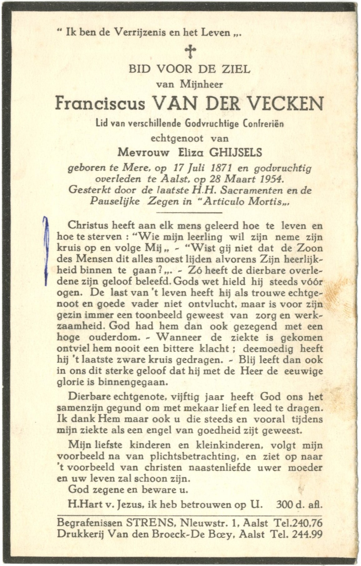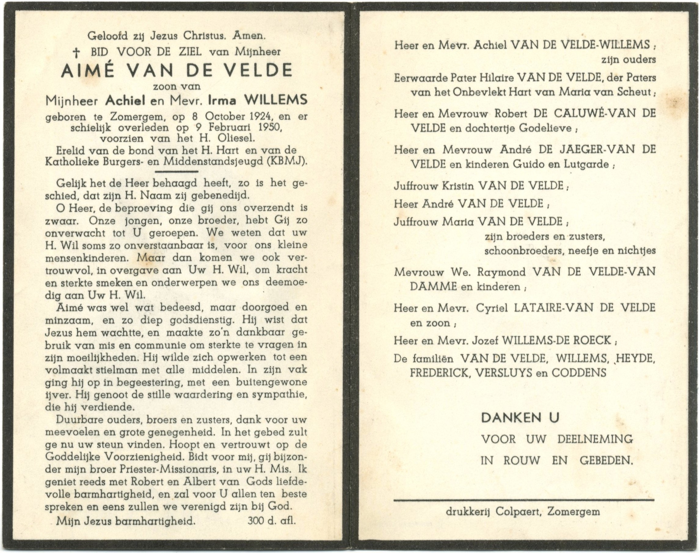 Van Acker, Vital-Cyriel (Oostwinkel 28/12/1894 - Eeklo 20/3/1969) w. Van Speybroeck, Marie-Juliana