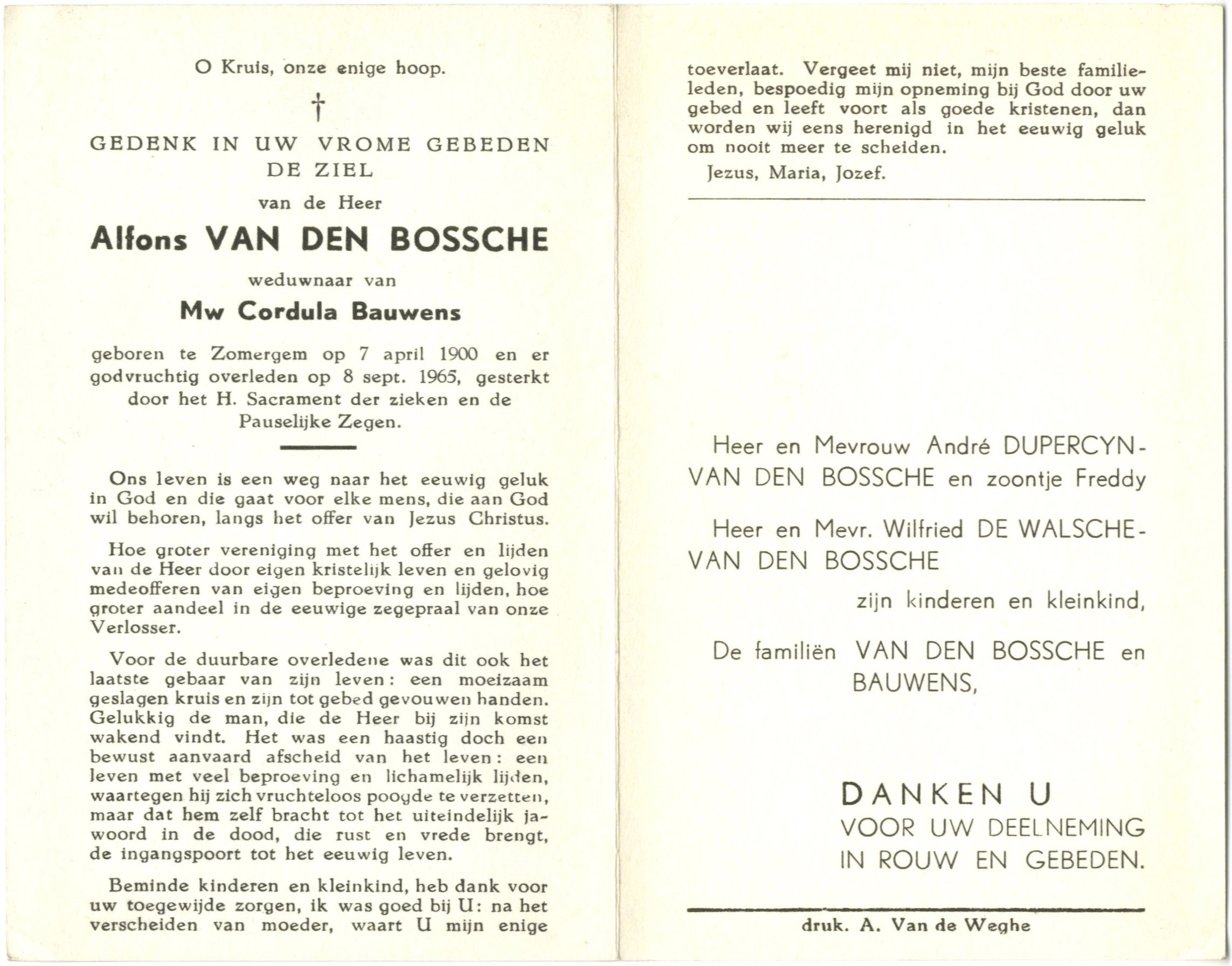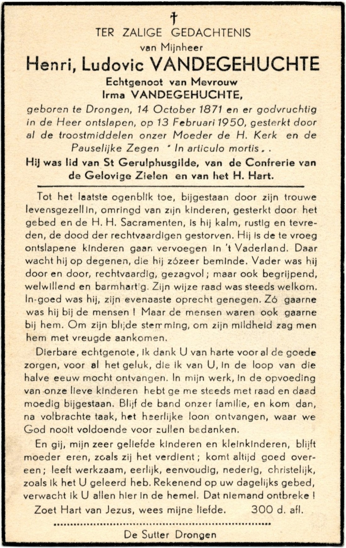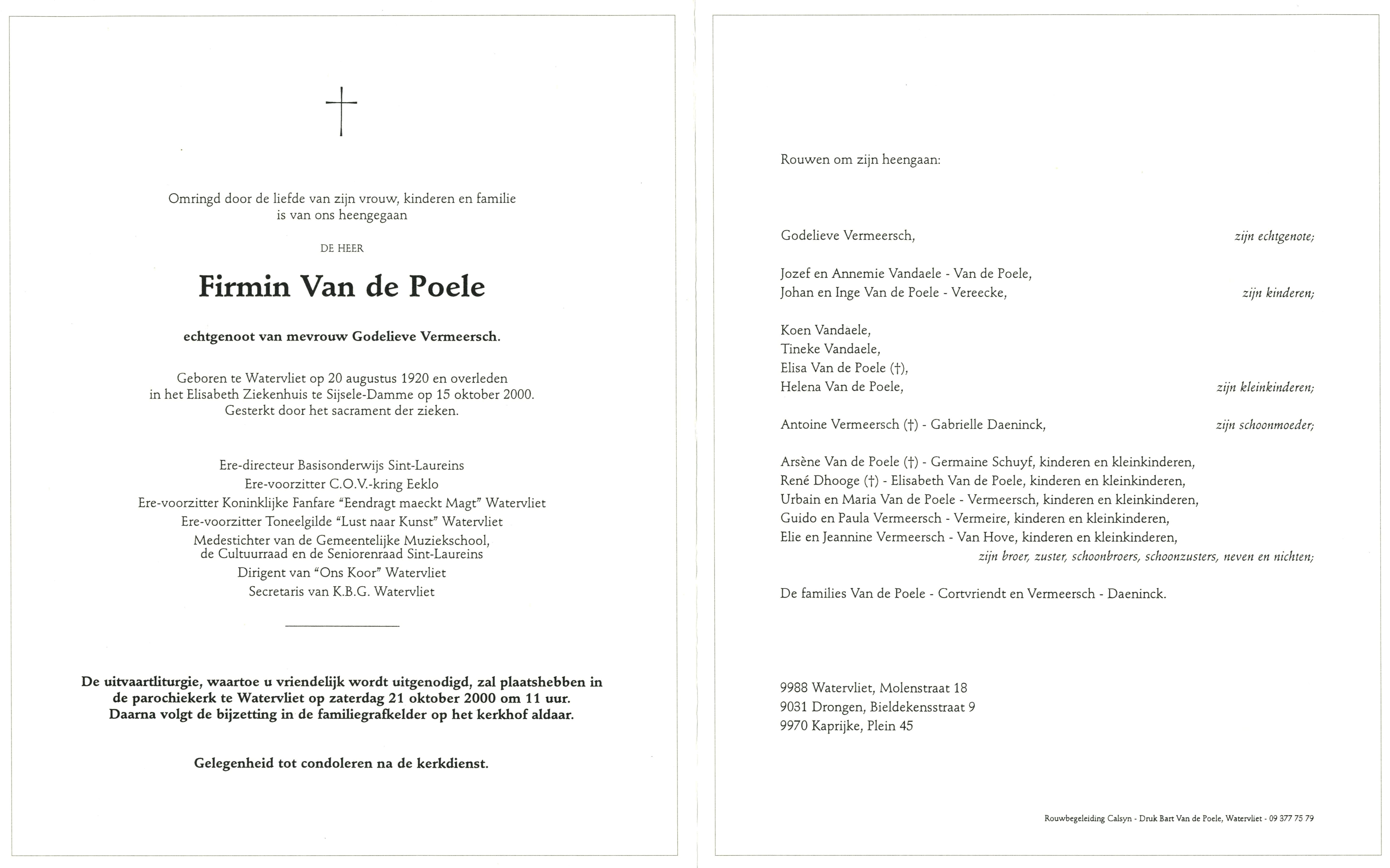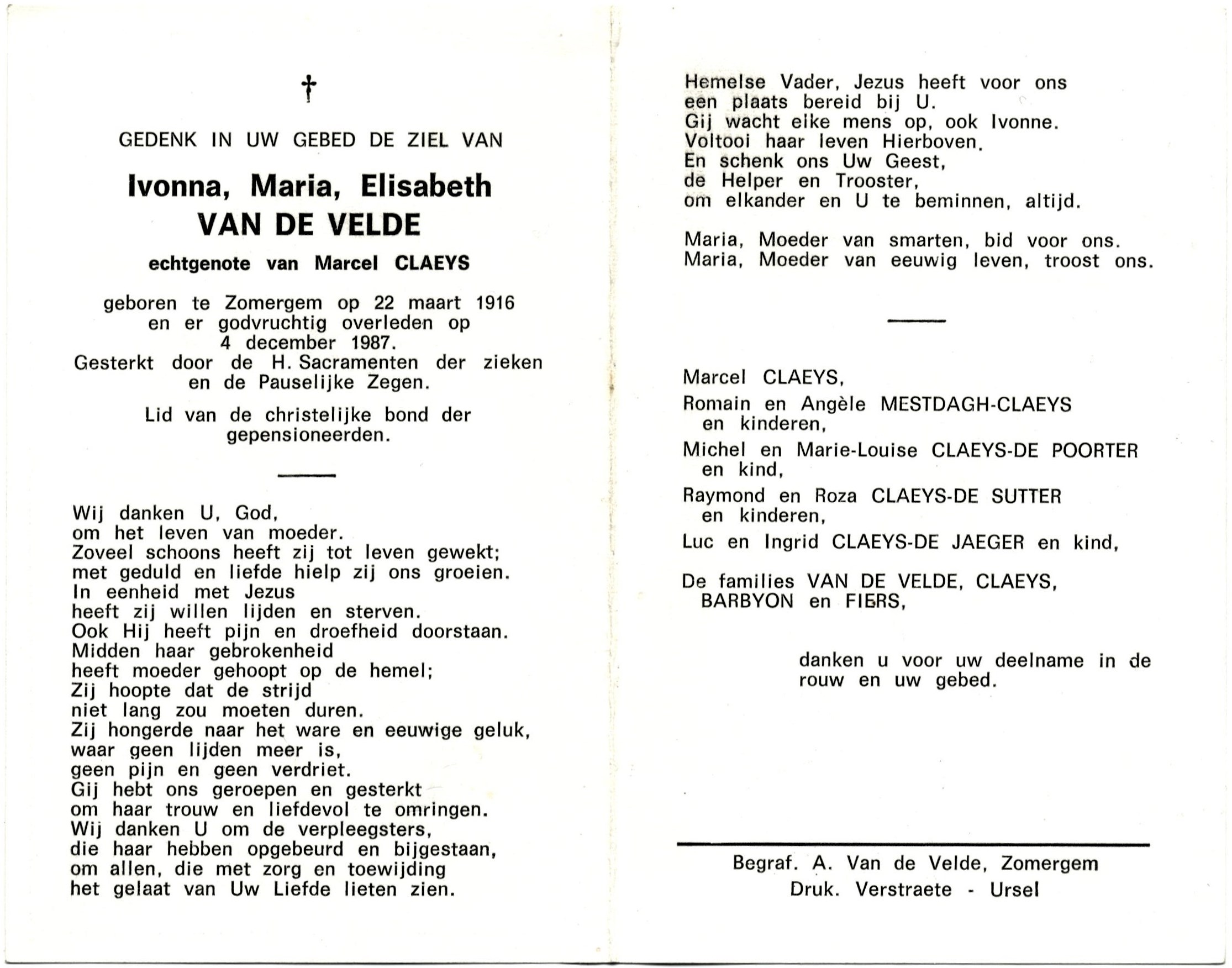 Van De Wattyne, Florimond Henri (Zomergem 14/3/101 - id 21/8/1990) w. Claeys, Germaine