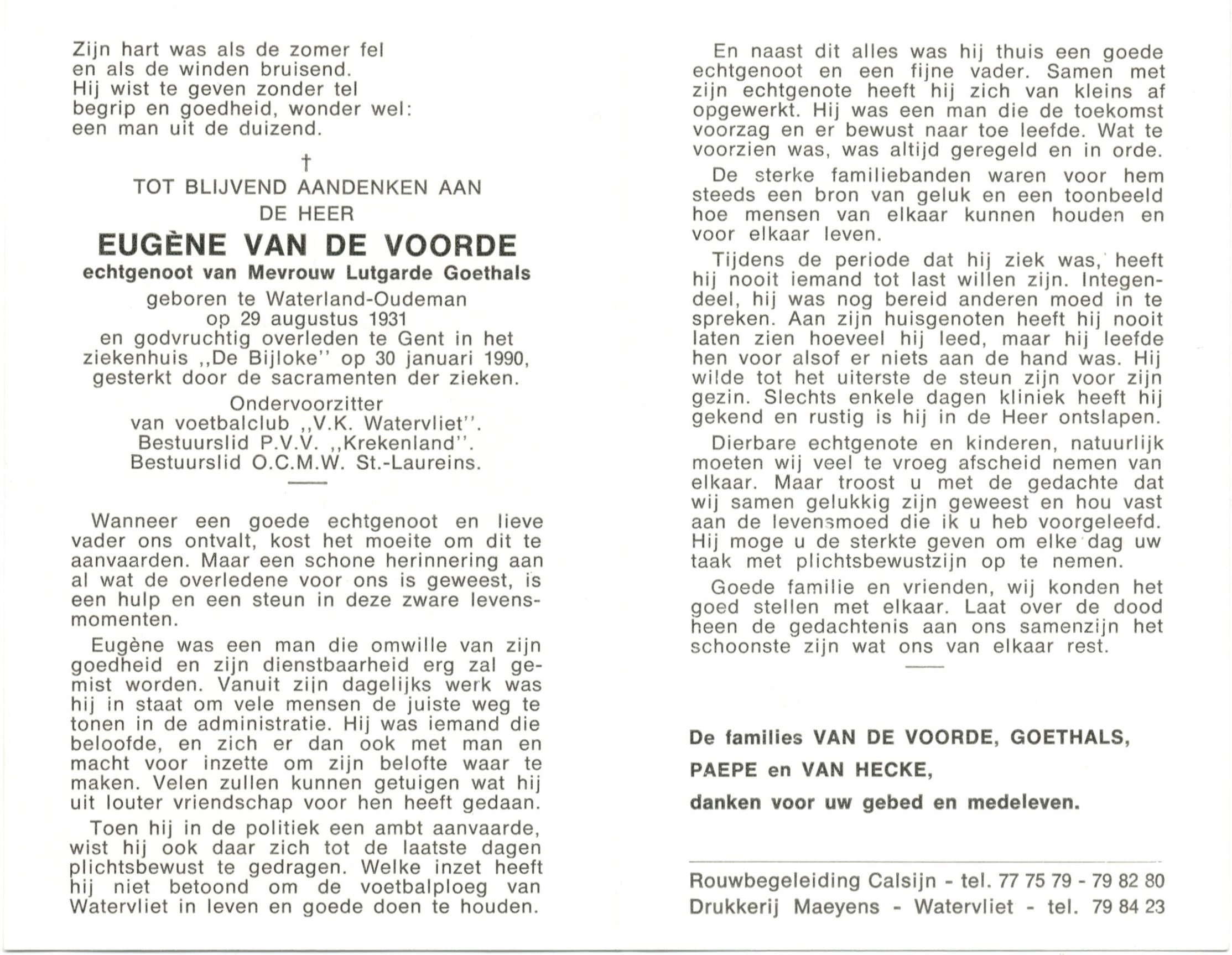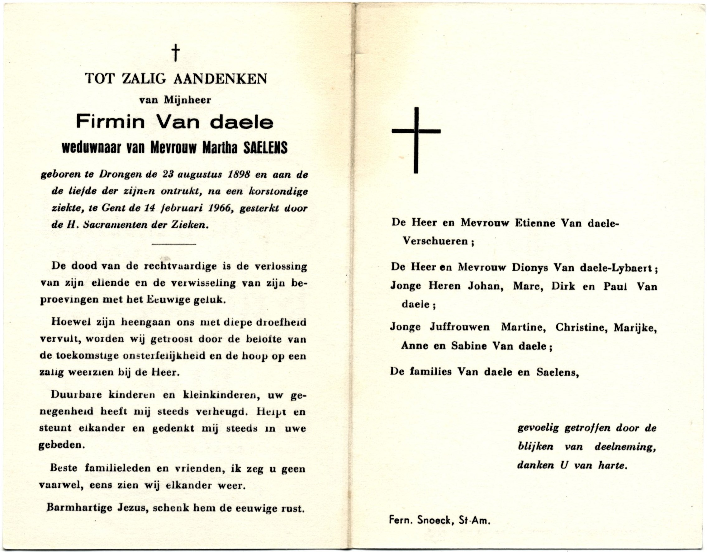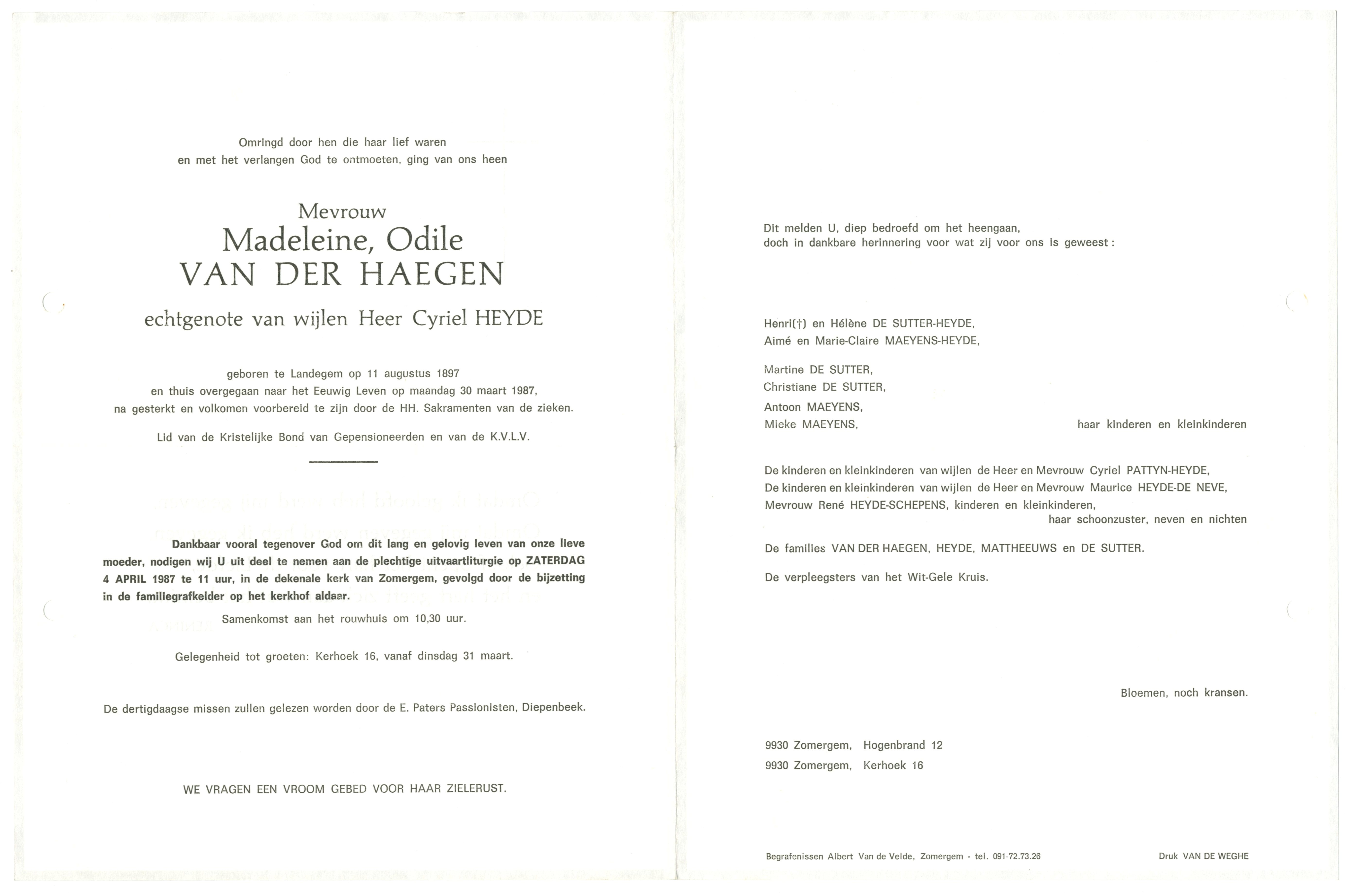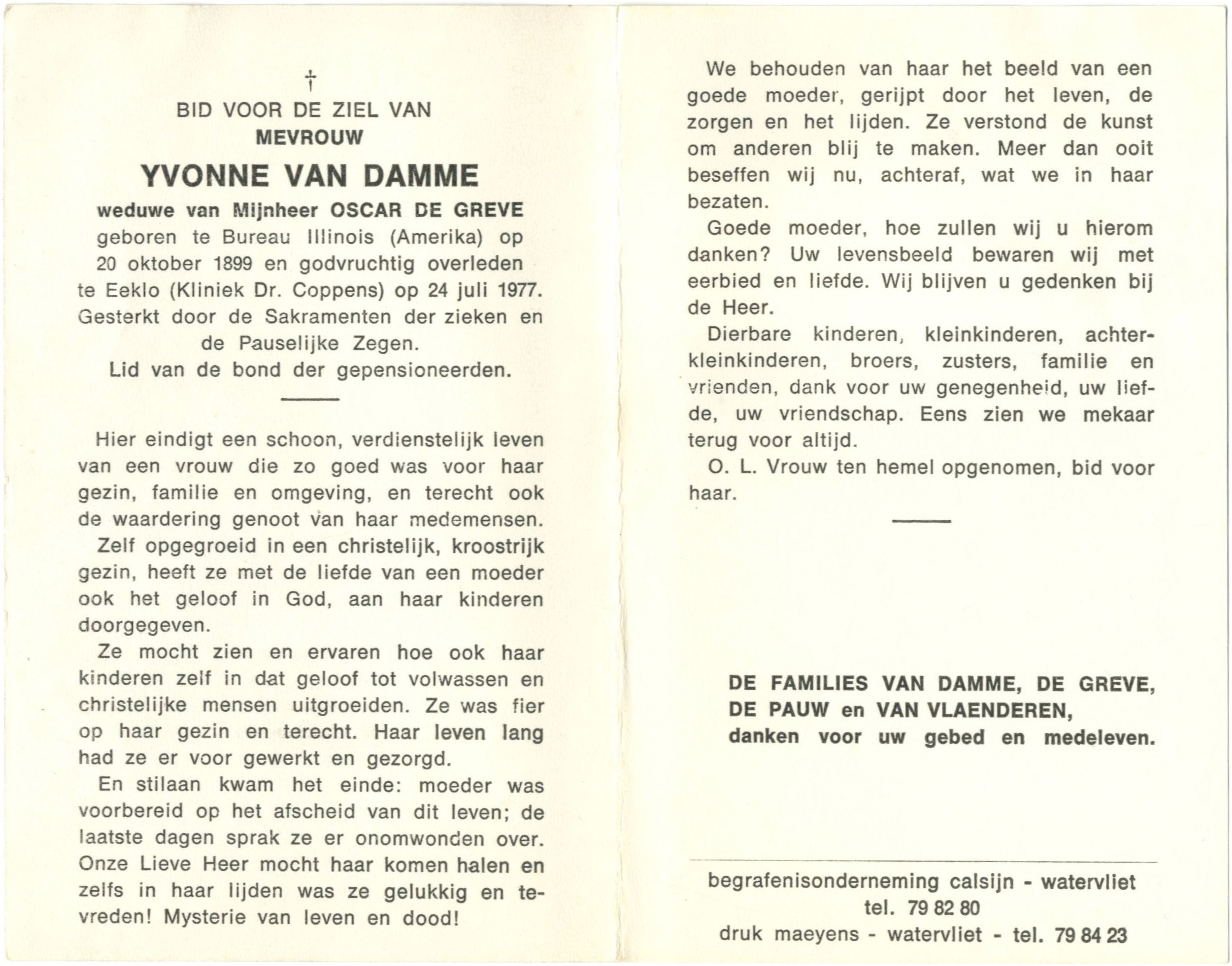 Van De Wattyne, Florimond Henri (Zomergem 14/3/101 - id 21/8/1990) w. Claeys, Germaine