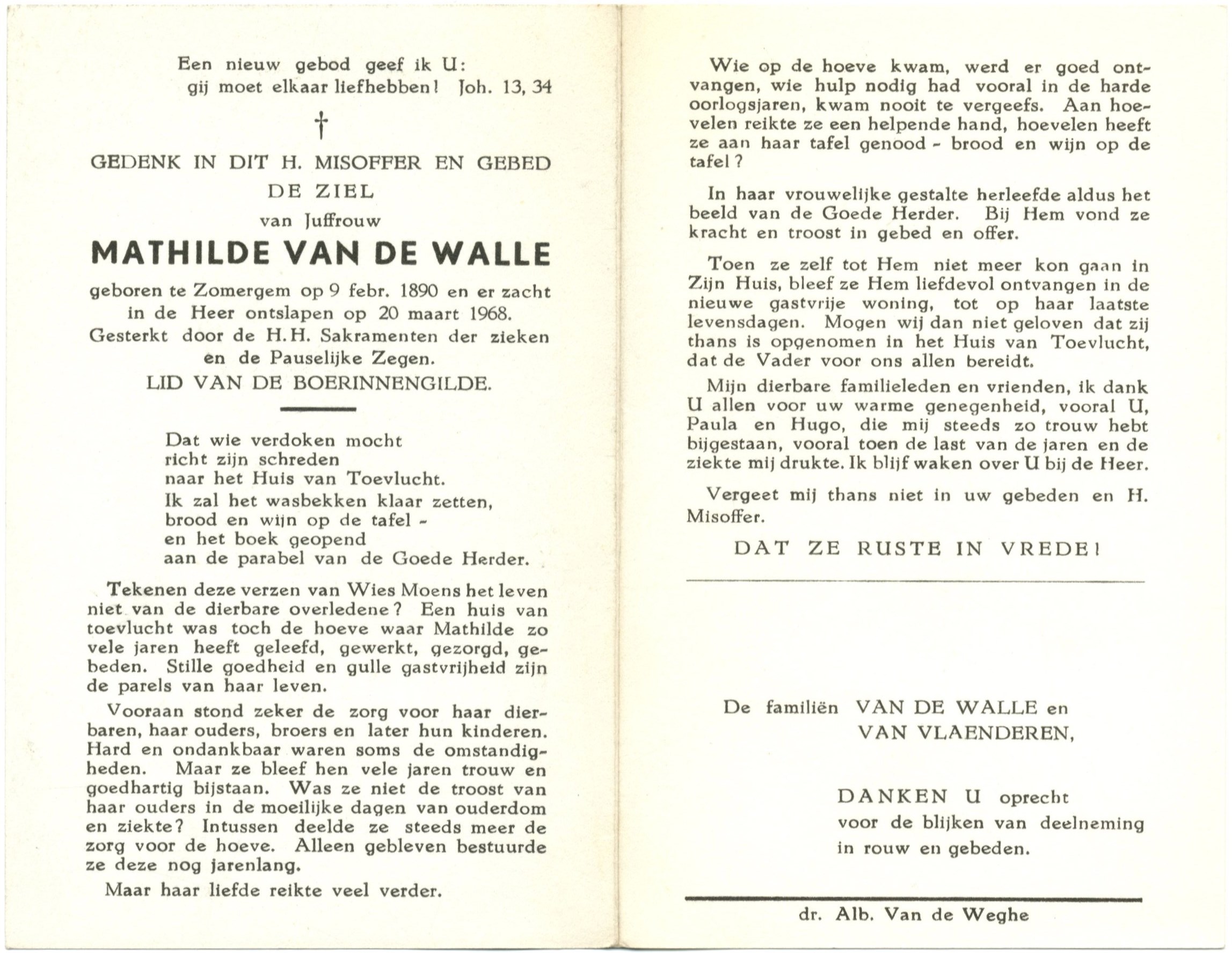 Van De Wattyne, Mathilde (Zomergem 21/1/1900 - id 28/1/1967) e. Cleays, Triphon