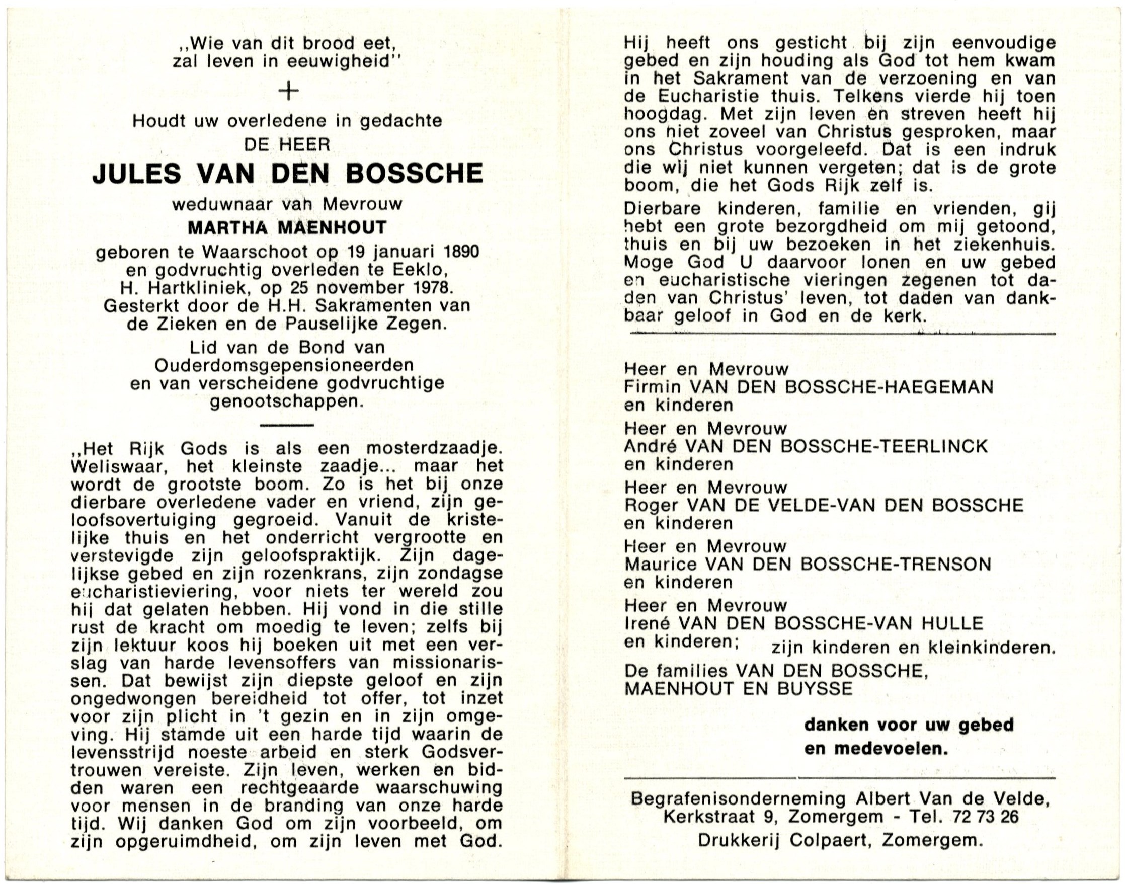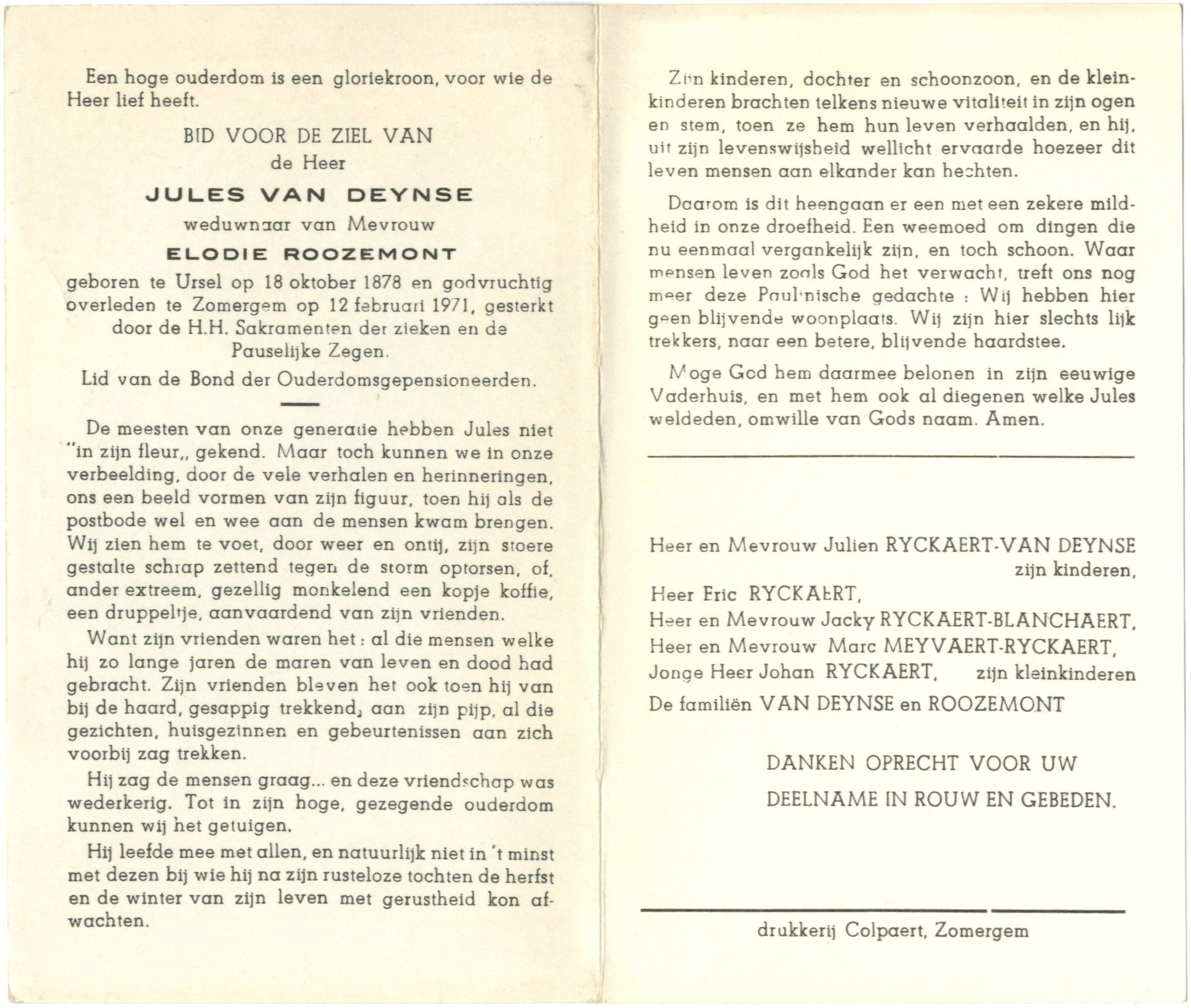 Van Deynse, Jules (Ursel 18/10/1878 - Zomergem 12/2/1971) w. Roozemont, Elodie