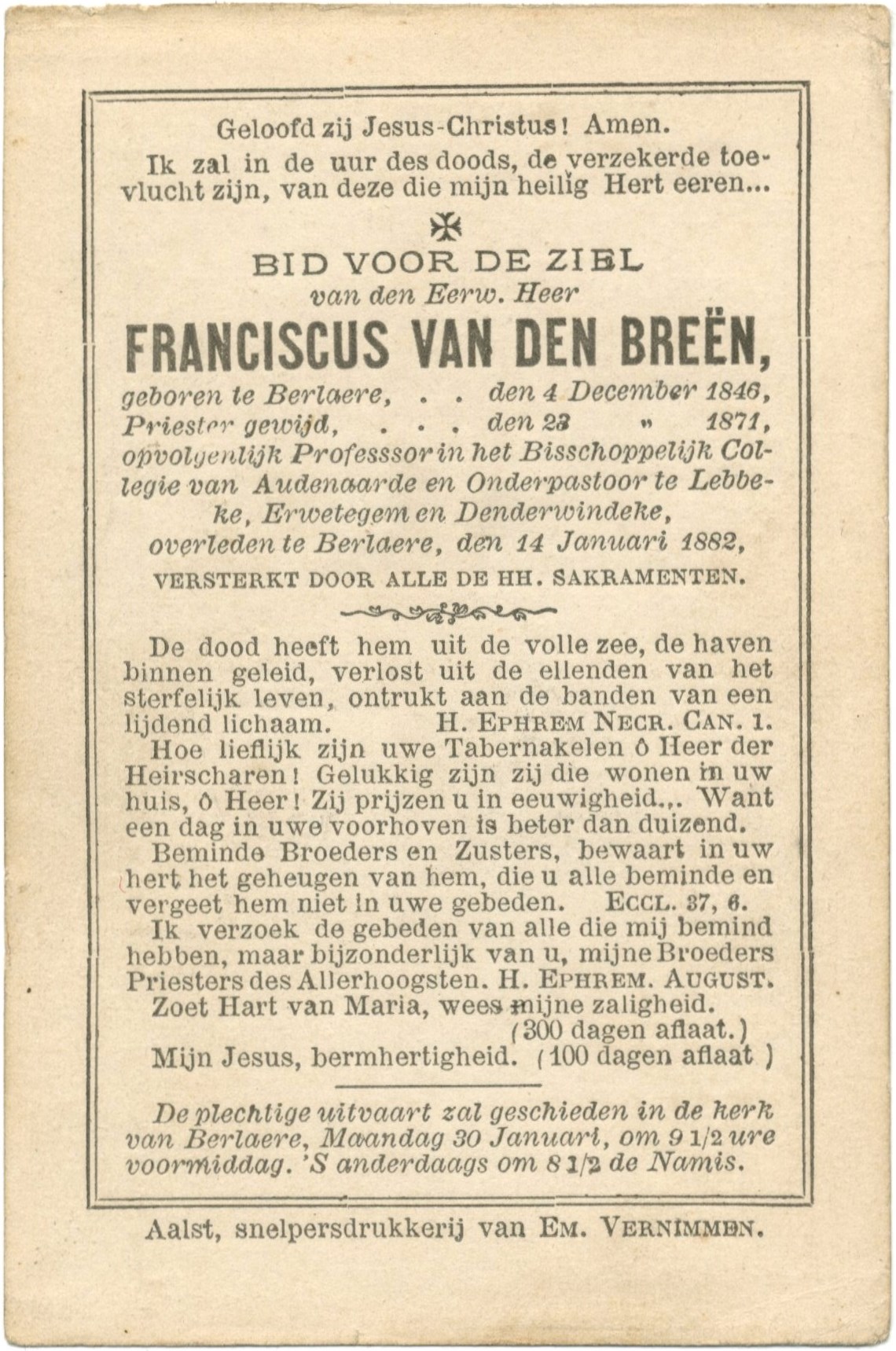 Vanaerschot, Benoit (Rotselaere 21/3/1843 - Gendbrugge 19/11/1908)