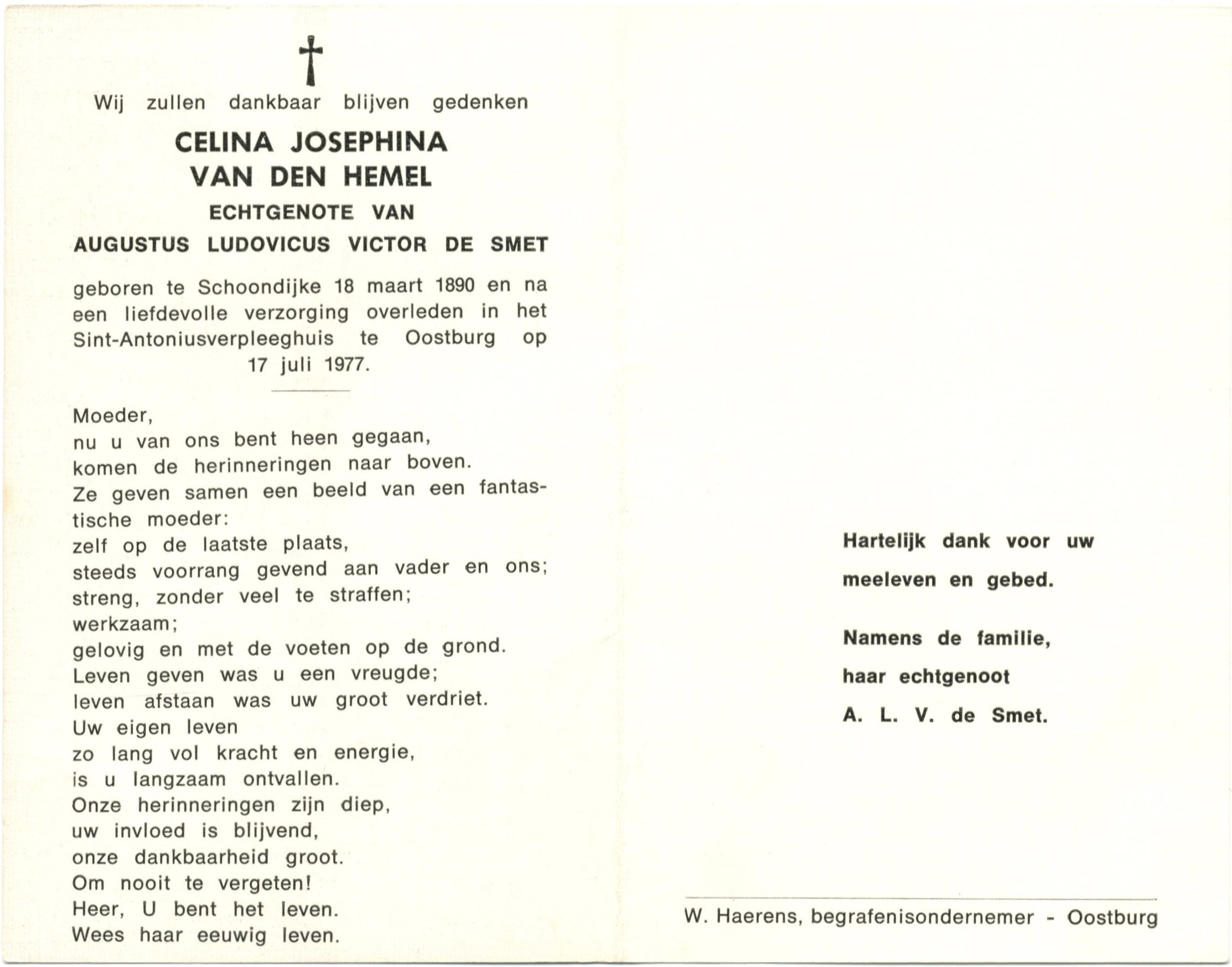 Van de Walle, Stephanie (Ertvelde 15/11/1894 - id 12/8/1972) w. De Scheemaeker, Kamiel