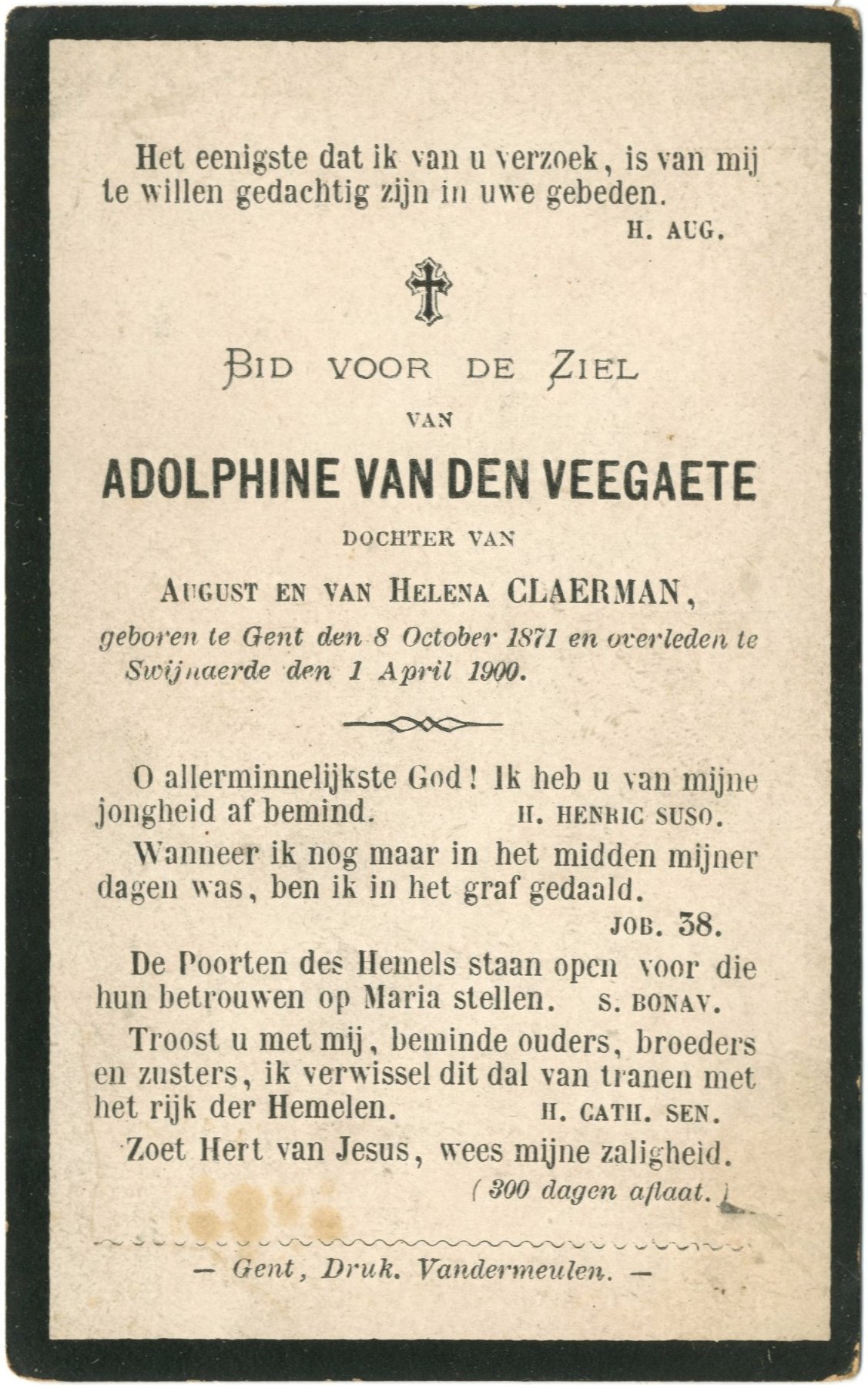 Van Autryve, Eugenia (De Pinte 26/2/1878 - Gent, St-Pieters-Buiten 8/4/1903) e. De Moerloose, Petrus