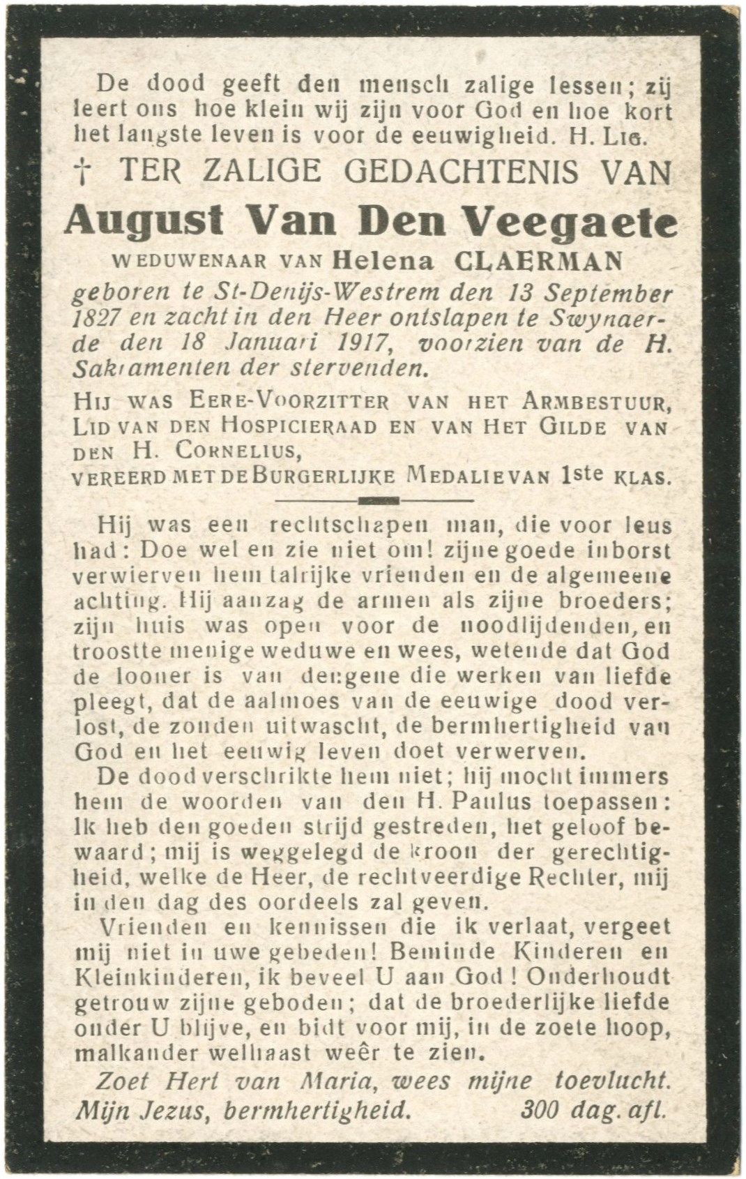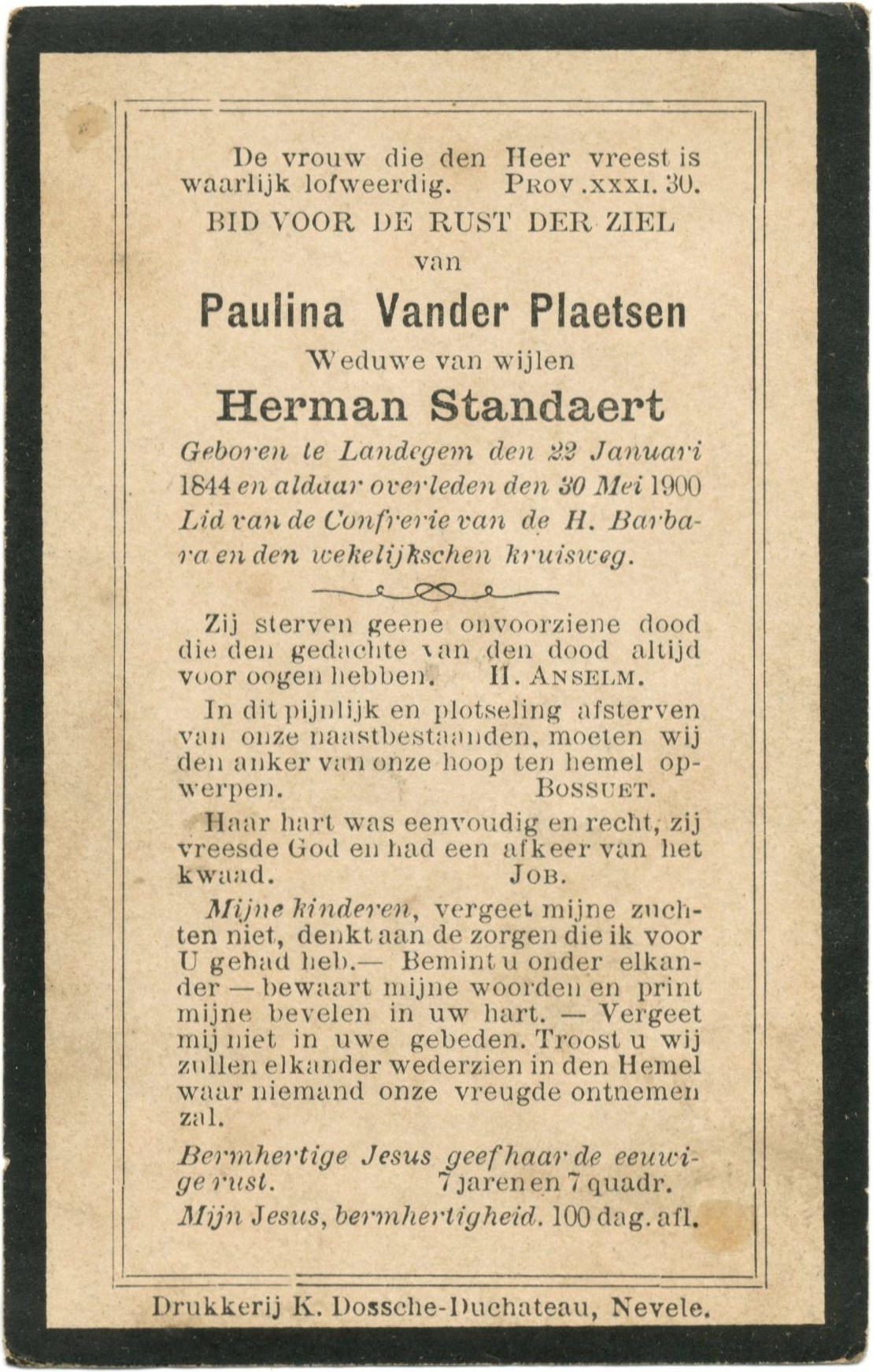 Van de Woestyne, August (Sleidinge 21/11/1855 - Waarschoot 17/1/1942) w. Standaert, Helena
