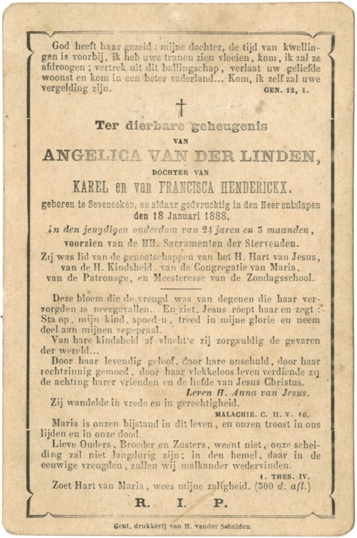 Van De Wiele, Seraphien (Overmeire 18/11/1871 - Lokeren-Heyende 19/5/1912) fs. Van De Wiele, Augustien en Looman, Johanna-Catharina