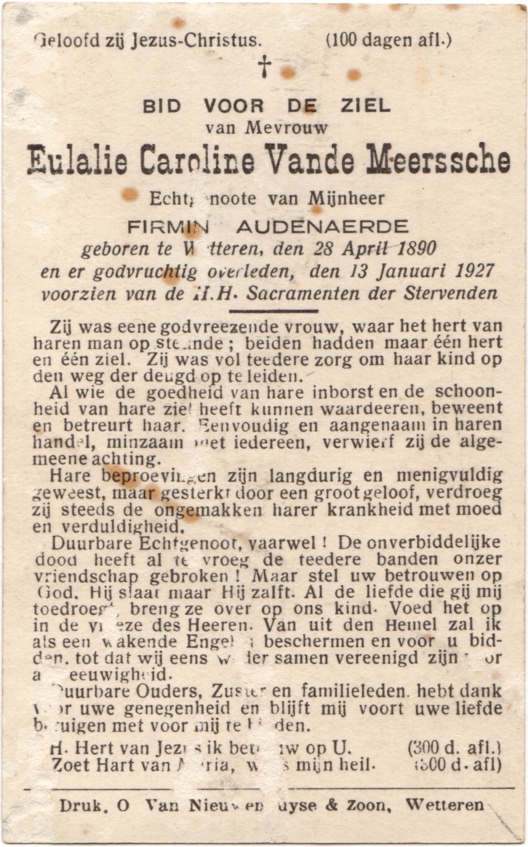 Van Alboom, Juliette (Wetteren 22/2/1884 - id 16/9/1952) e. Audenaert, Richard