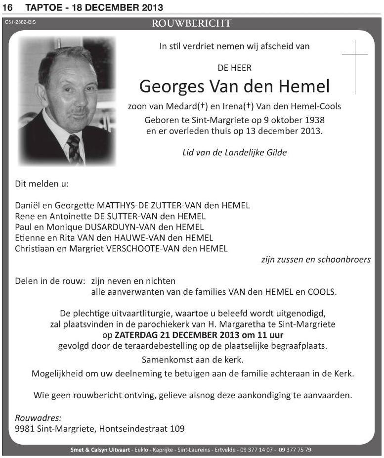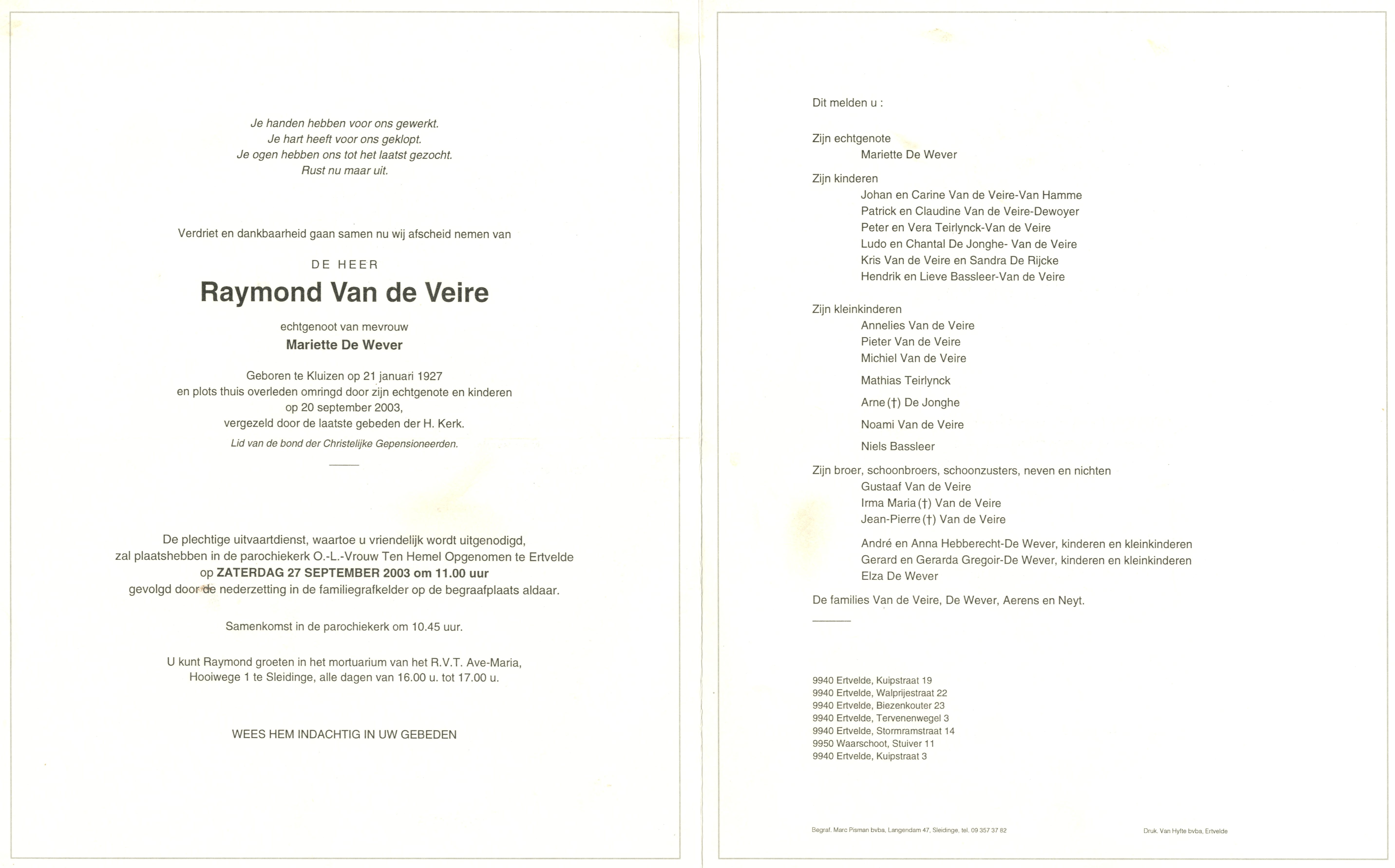 Vandewalle, Maurits (Eernegem 30/5/1925 - Sijsele 18/4/2011) e. Seynaeve, Rachel