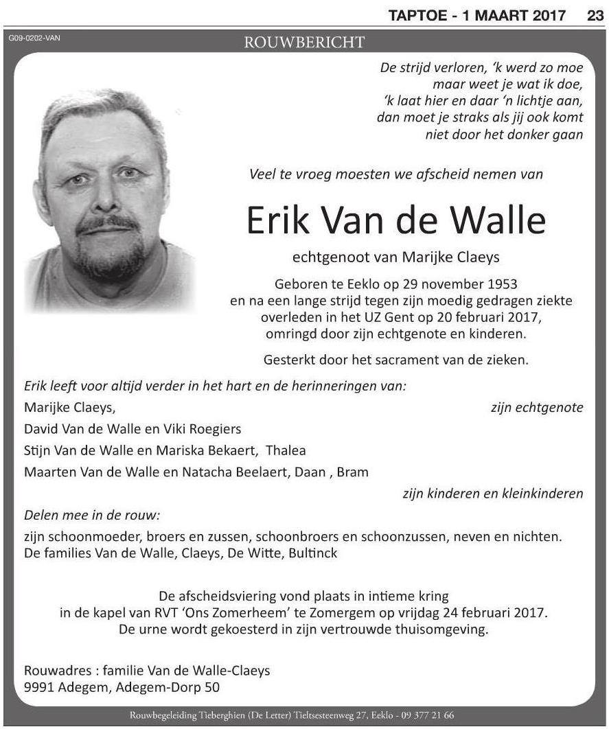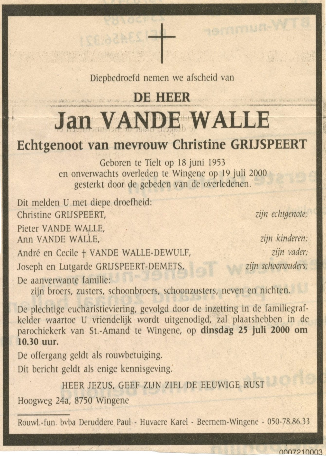 Van de Walle, Wilfried (Sleidinge 2/5/1952 - Nazareth 11/5/2002) e. Lievens, Karin