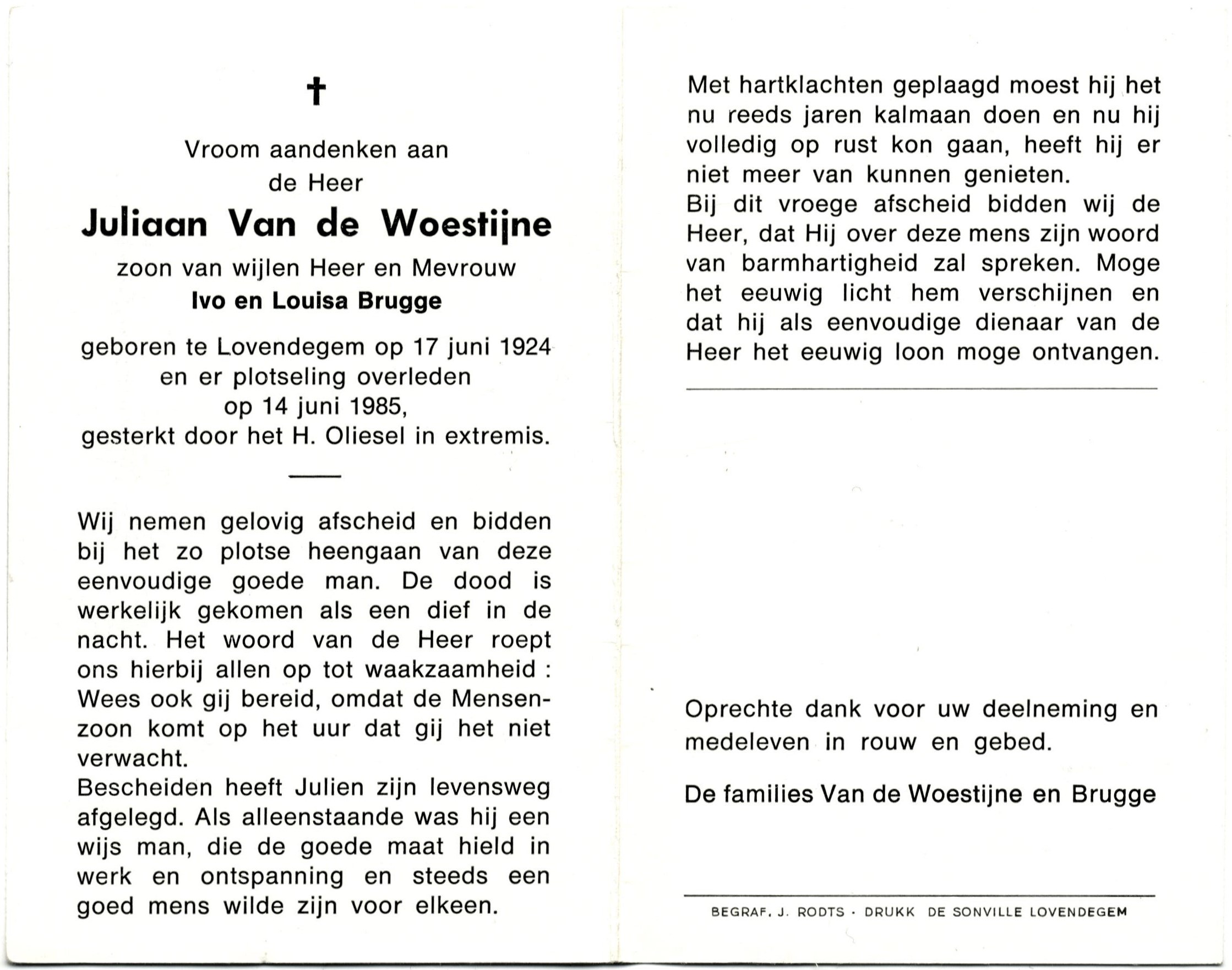 Van de Woestijne, Juliaan (Lovendegem 17/6/1924 - id 14/6/1985) fs. Van de Woestijne, Ivo en Brugge, Louisa