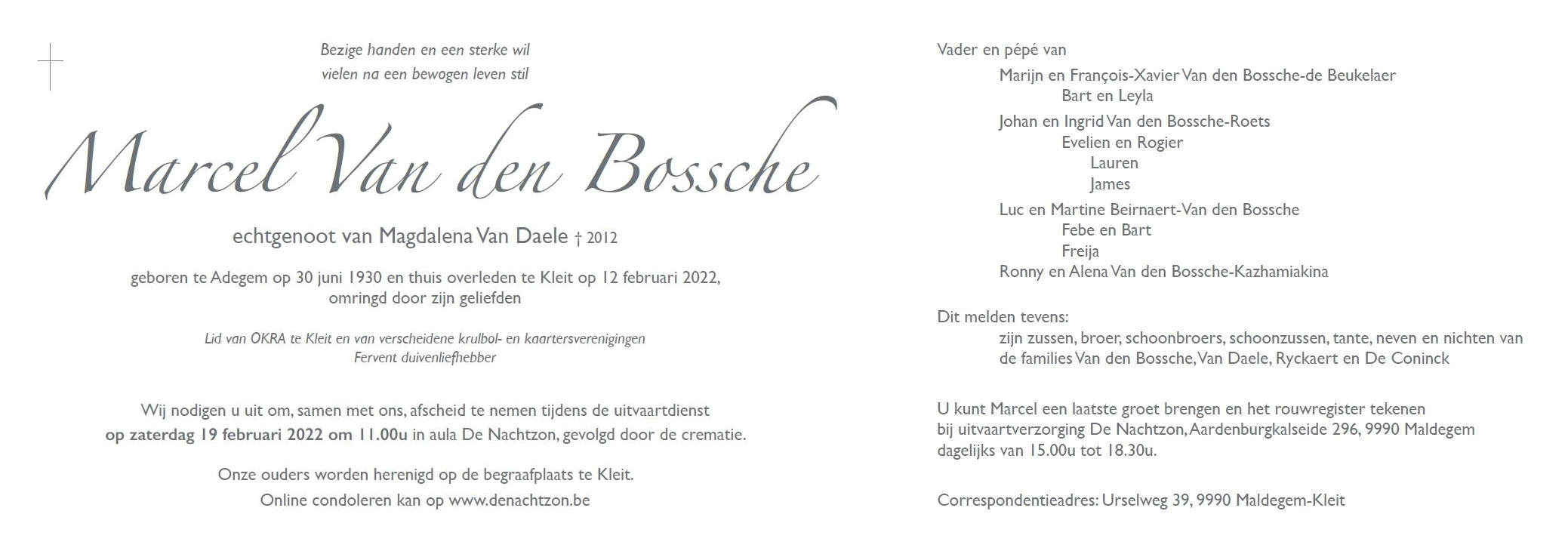 Van Basselaere, Theophile (St.-Laureins 28/9/1926 - Sijsele 17/10/2014) w. Dobbelaere, Irena