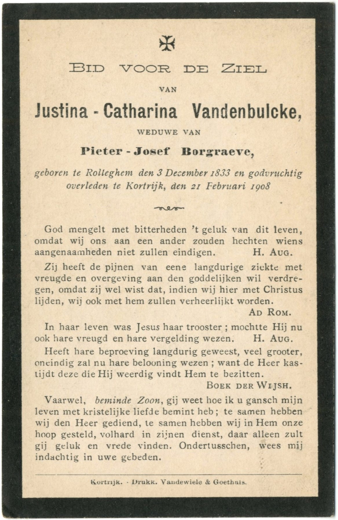 Van De Weghe, Petrus (° Oostwinkel - + Zomergem 2/12/1898, oud 65 j.) e. Van Den Kerchove, Elodie