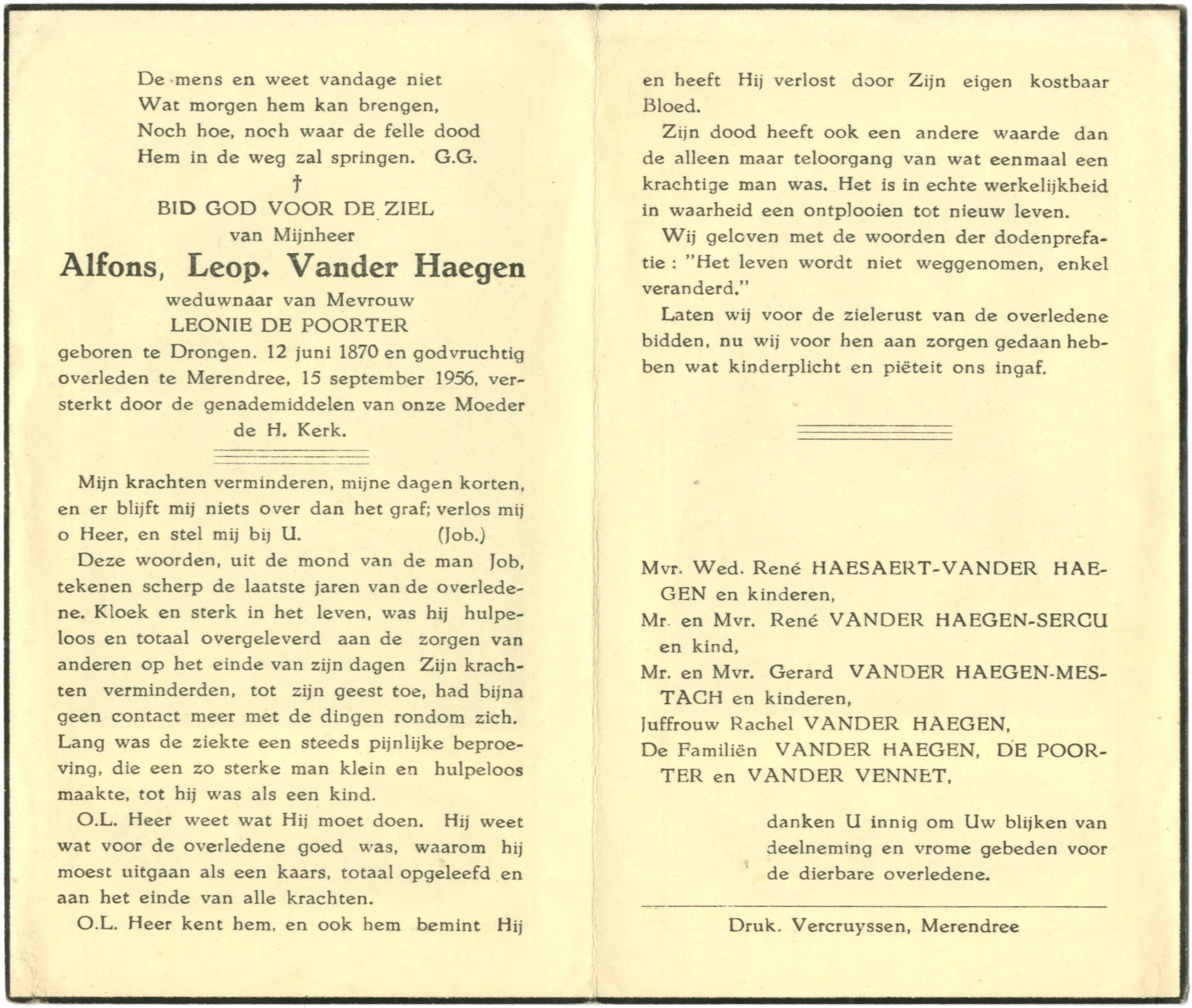 Van Aerde, Arthur (Vinderhoute 25/12/1890 - Zomergem 1/3/1967) w. De Meyer, Irma