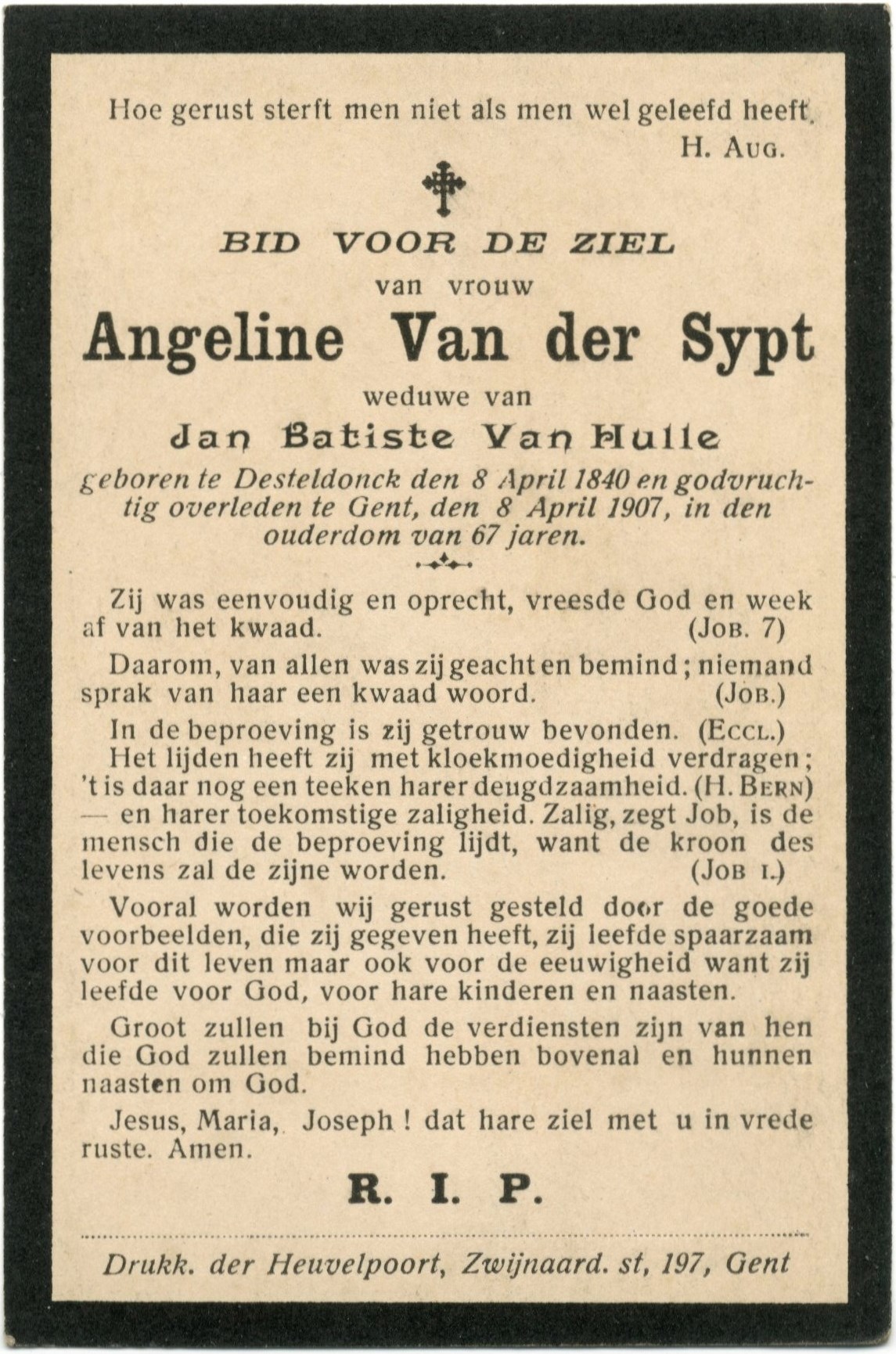 Van De Wiele, Hortense (Gijzenzele 15/2/1863 - Wetteren 26/11/1950) e. Lippevelde, Petrus