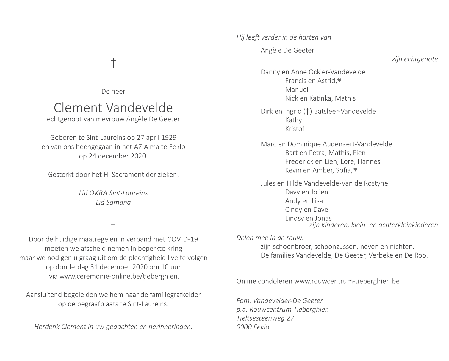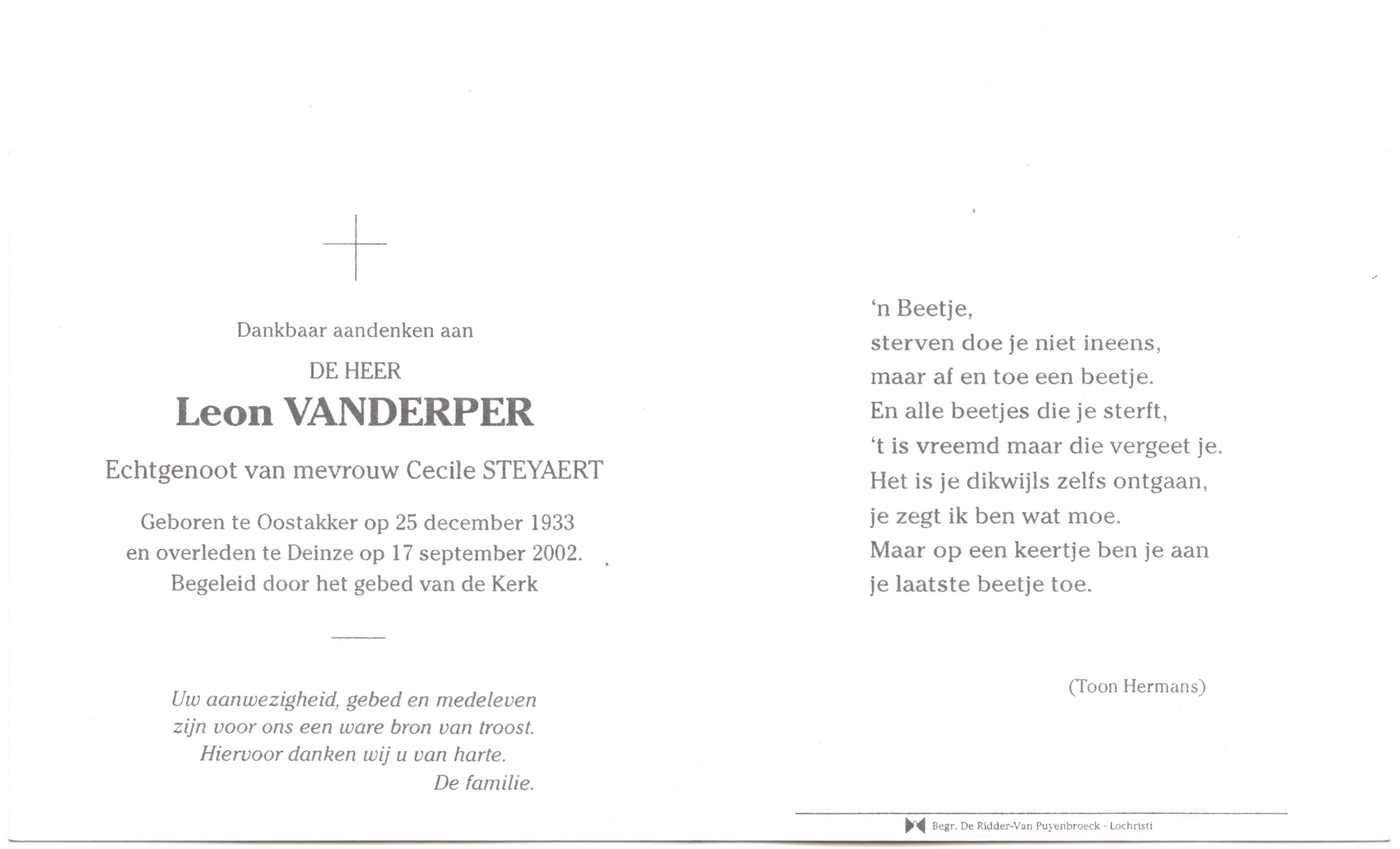 Van Acker, Clement (Watervliet 18/12/1915 - Eeklo 5/7/2000) w. Van Vooren, Palmyra