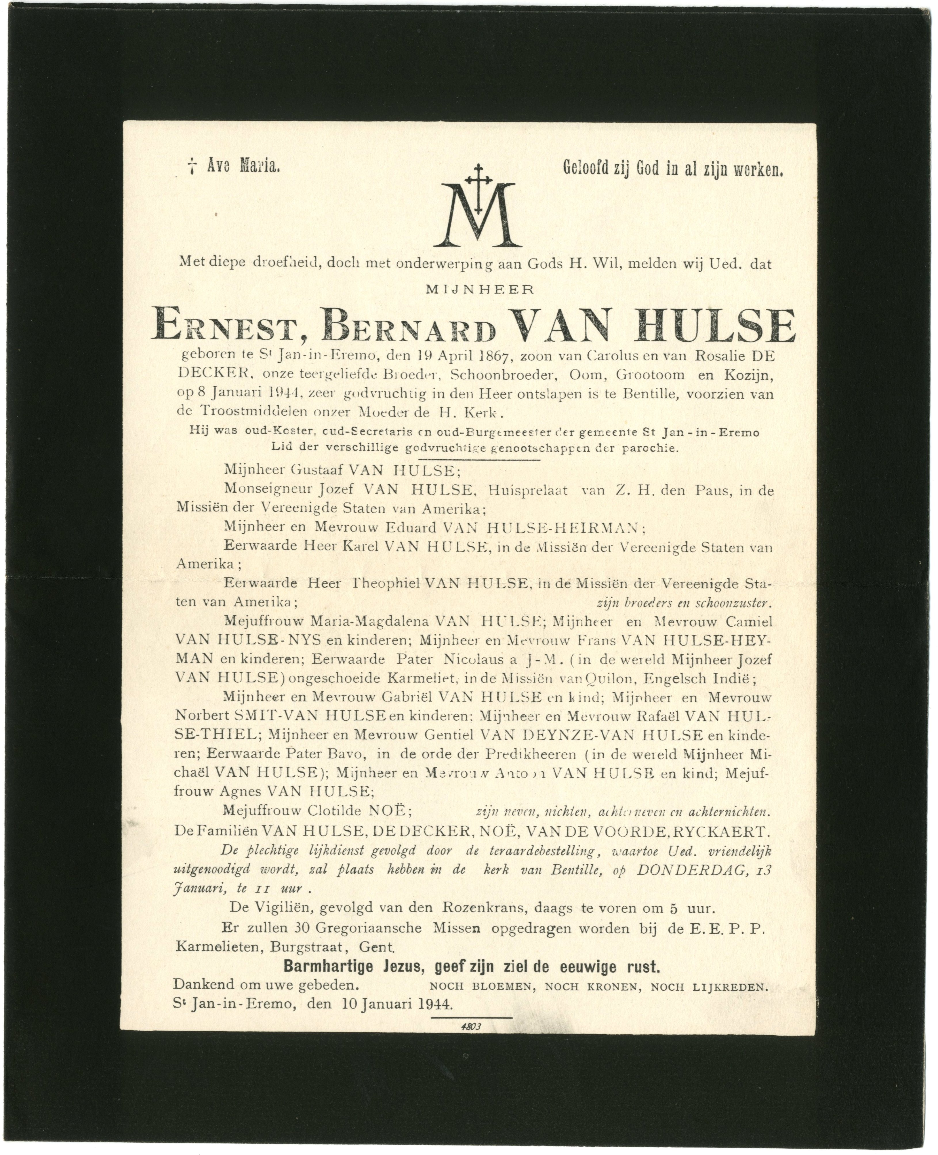 Van Driessche, Hypolitus - Henricus (° Deftinge - + Goefferdinge 10/12/1877, oud 55 j.) e. Cosyns, Maria - Julianna