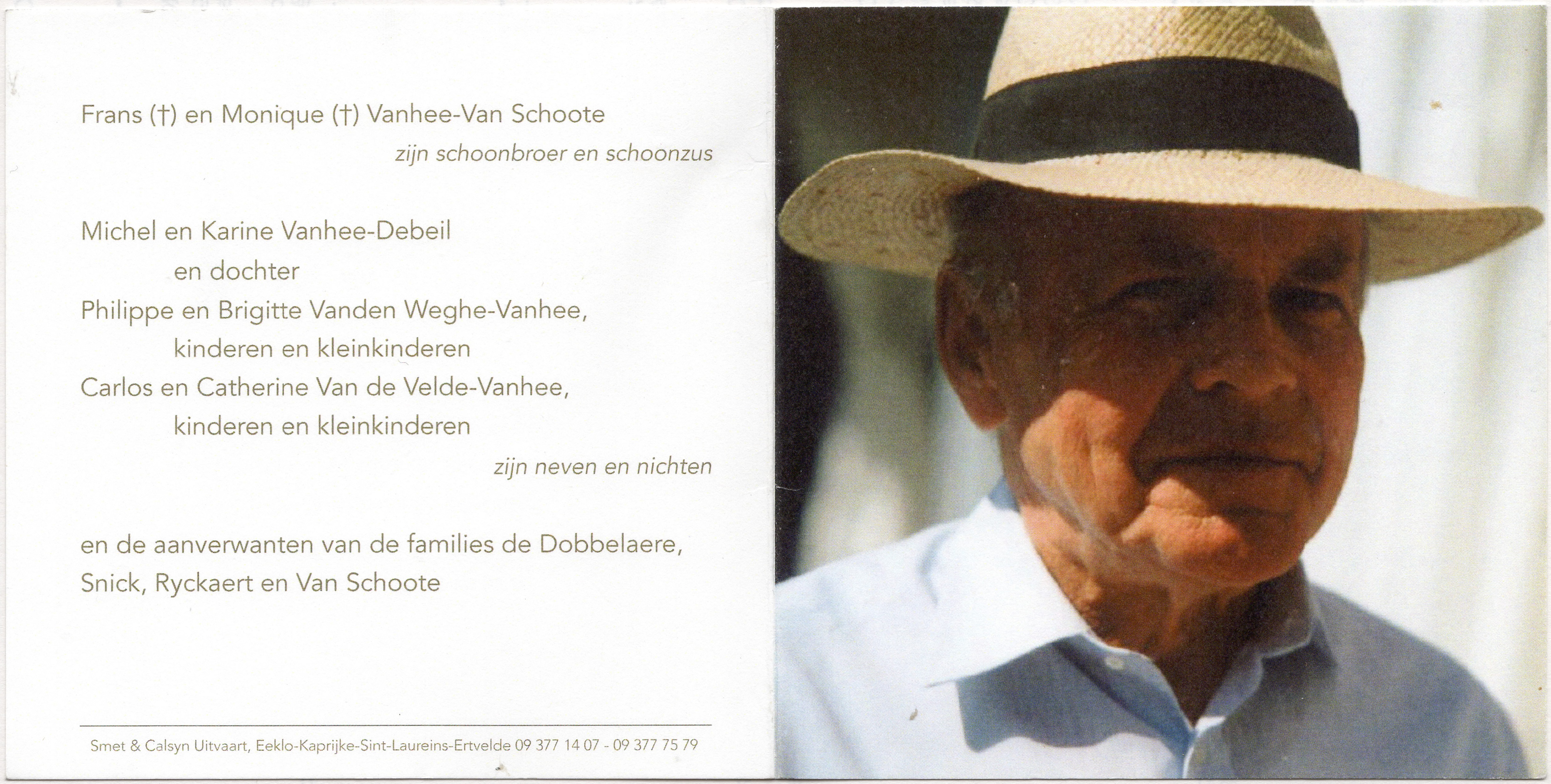Van Zele, Juliaan (Bassevelde 17/5/1942 - id 11/10/2014) e. Rijckaert, Rita