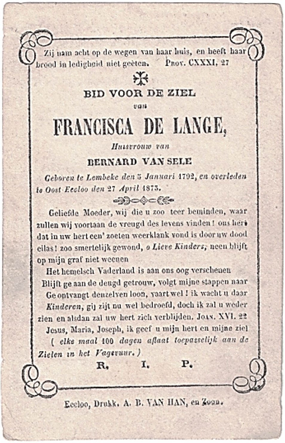 x Lembeke 5 februari 1812 Francisca de Langhe