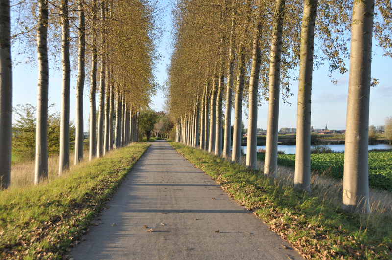 And beyond that, between the first two poplars, the spire of the church of