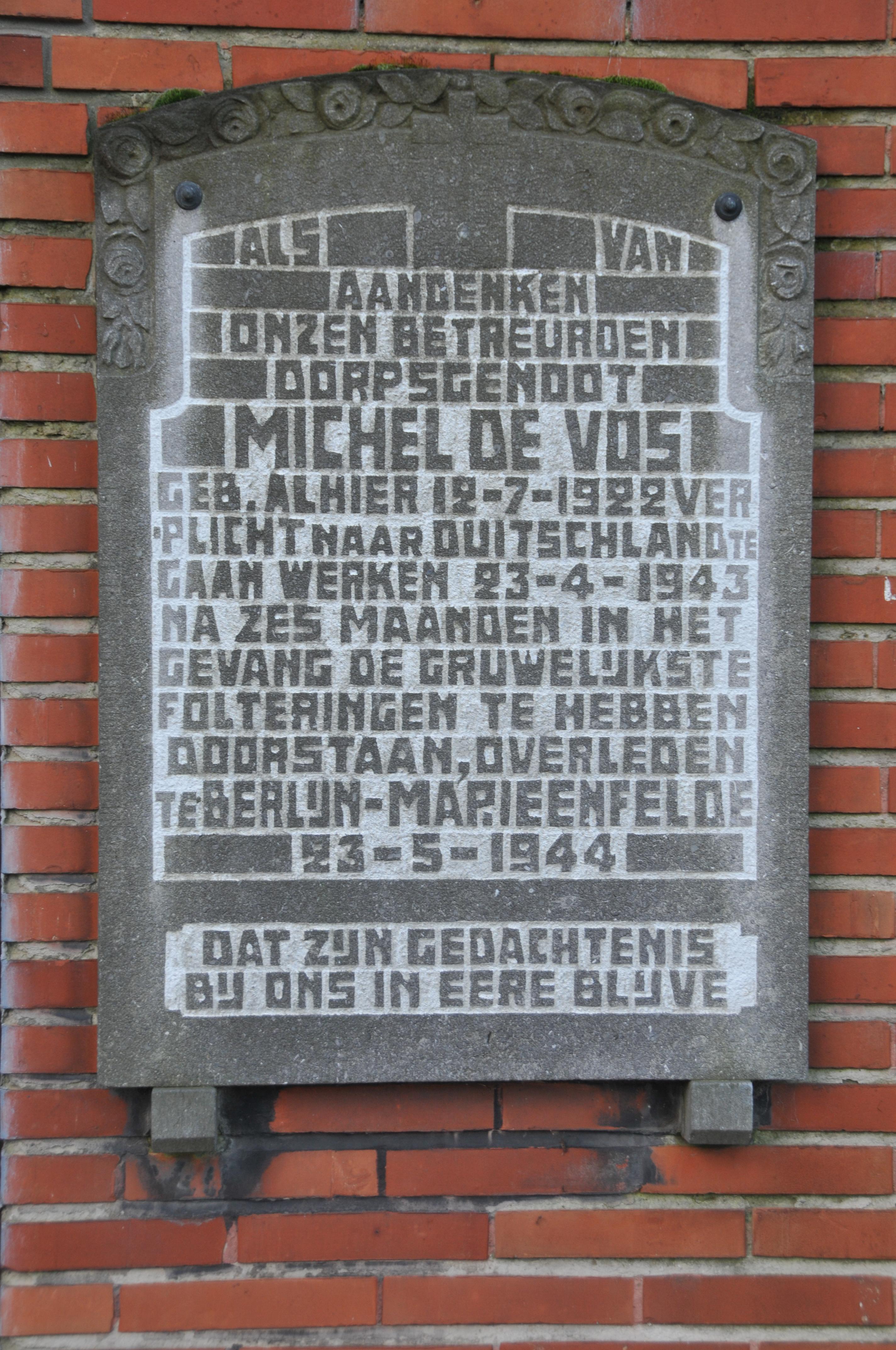 A commemoration of fellow villager Michel De Vos,