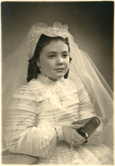 Een foto gemaakt in 1952 ter gelegenheid van haar Plechtige Communie