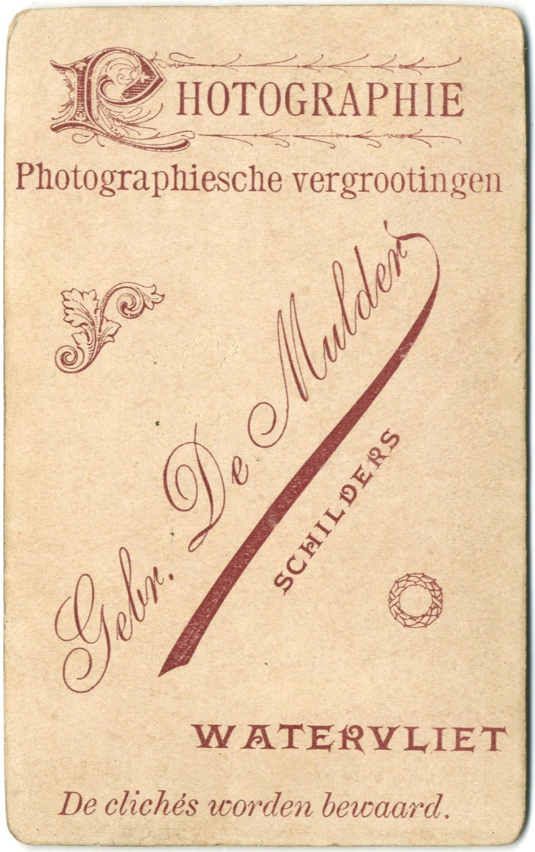 Dit is het werk van «Photographie Gebr. De Mulder, Schilders, Watervliet».