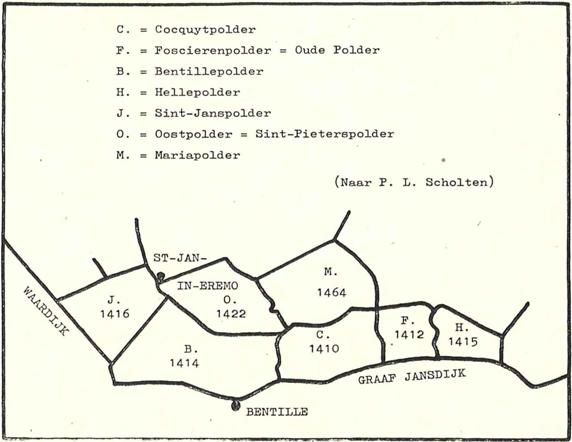 In haar studie over de historische geografie van Westelijk Zeeuws Vlaanderen heeft Dr. Gottschalk reeds uitvoerig het ontstaan van de polders rond Bentille besproken. In deze bijdrage brengen we dan ook slechts enkele aanvullende gegevens bijeen betreffende de oppervlakte van die polders en een meer preciese datering van hun ontstaan.