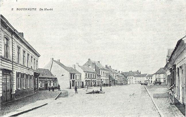 | 28. De Markt te Boekhoute. Rechts, op de achtergrond, bemerkt men nog de monumentale pomp. Kaart afgestempeld op 20 oktober 1919. |