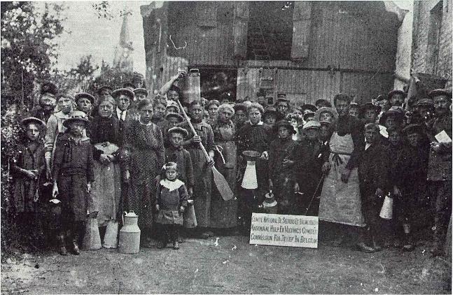 | 33. Bedeling van soep in de melkerij, Weststraat, onder de oorlog 1914-18, bezorgd door de Bevoorradingscommissie, met behulp van de «Commission tor Relief". |