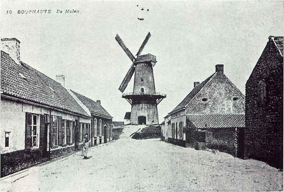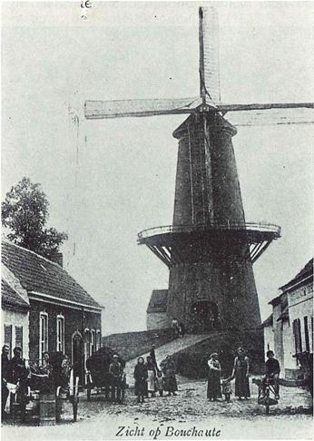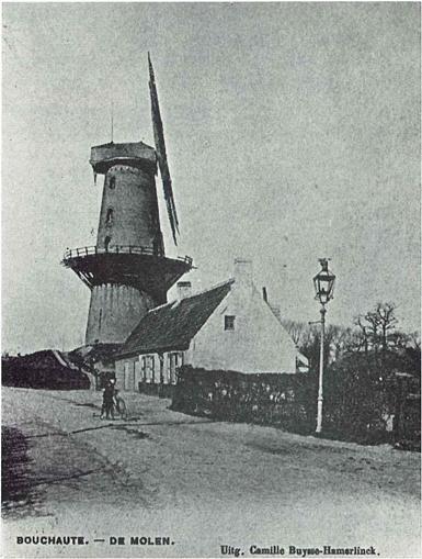 | 35. De grote stenen korenwindmolen van Boekhoute omstreeks 1910. |