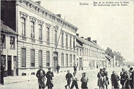 Voor 1840 was de bebouwing langsheen de Stationsstraat niet zo belangrijk. Daar stonden meestal lage en onaanzienlijke huisjes; van sommige kon men zelfs de pannen aanraken: de meeste hadden een voorhof of moestuintje. Voorbij de Garenstraat waren de huisjes bovendien zeer dun gezaaid, tot op «De Kroon». In de Stationsstraat stond reeds een groot gebouw van vroeger, op de plaats waar nu het oude vredegerecht is (Kantoor der Belastingen). Dat gebouw was in zijn oorsprong een van de oudste huizen van Eeklo. In de 18e eeuw werd het hersteld en toen bewoond door de graanhandelaar Fruytinck, officier municipaal. Deze verkocht het in 1806 aan de stad voor 11.174,60 fr. en het werd gebruikt als onderprefectuur. Nadien was het nog bewoond door de baron d'Exaerde tot in 1831. Daarna werd dat gebouw bestemd voor de rijkswacht van Eeklo (L. Lampaert).