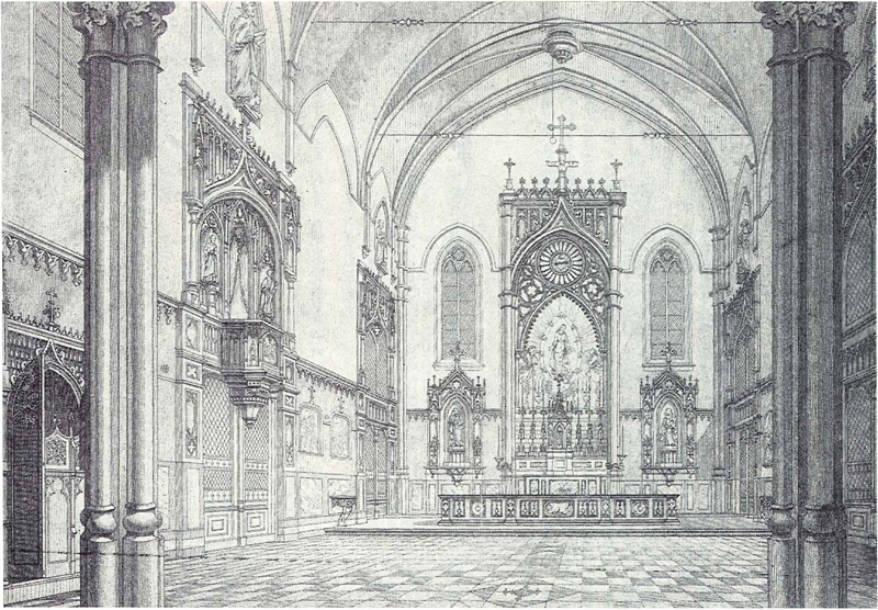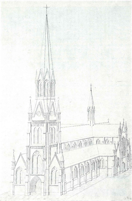 Ontwerp voor de nieuwe Sint-Vincentiuskerk te Eeklo, zoals voorgesteld door Ridder Stroo, maar (gelukkig) niet uitgevoerd. |