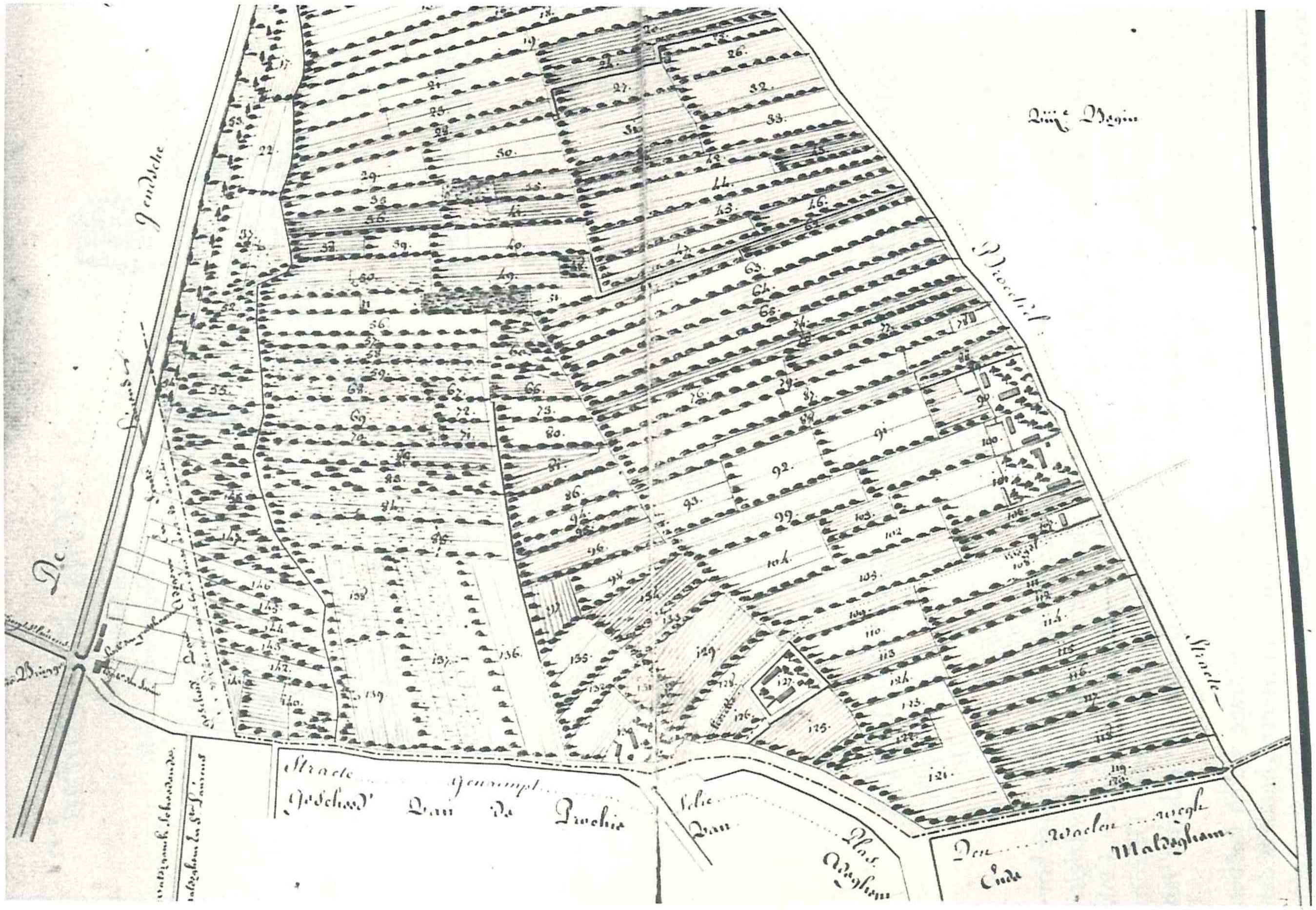 genummerde percelen, gaande van enkele roeden tot enkele gemeten. De "hemelse