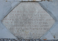 Onder de nis is een ruitvormige steen ingemetseld. Deze steen is versierd, bovenaan met een engelkopje, en onderaan met een doodshoofd met beenderen. Deze steen vermeldt het volgende: