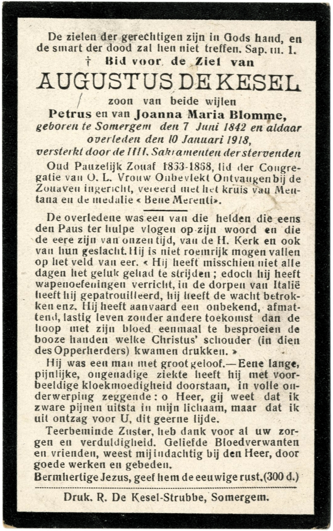 Twee Zoeaven afkomstig van Zomergem noemden allebei August De Kesel. Hier volgen hun bidprentjes.